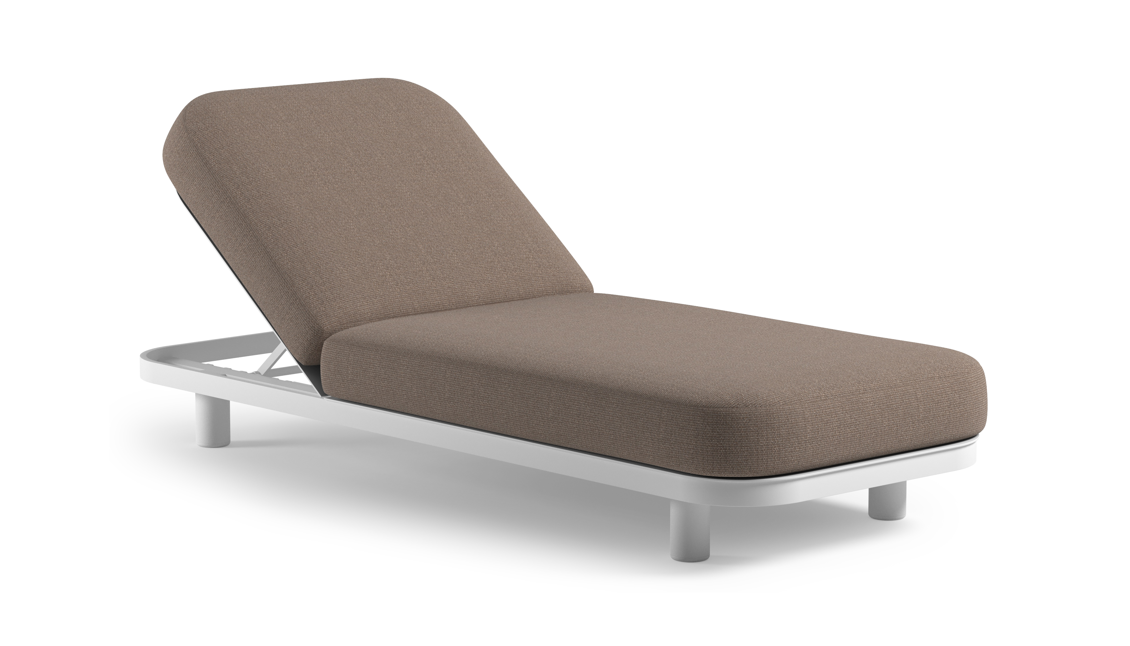 Chaise longue réglable Donato en aluminium blanc et coussin en all weather Sunbrella® luxe savane earth | Exterioo mobilier de jardin