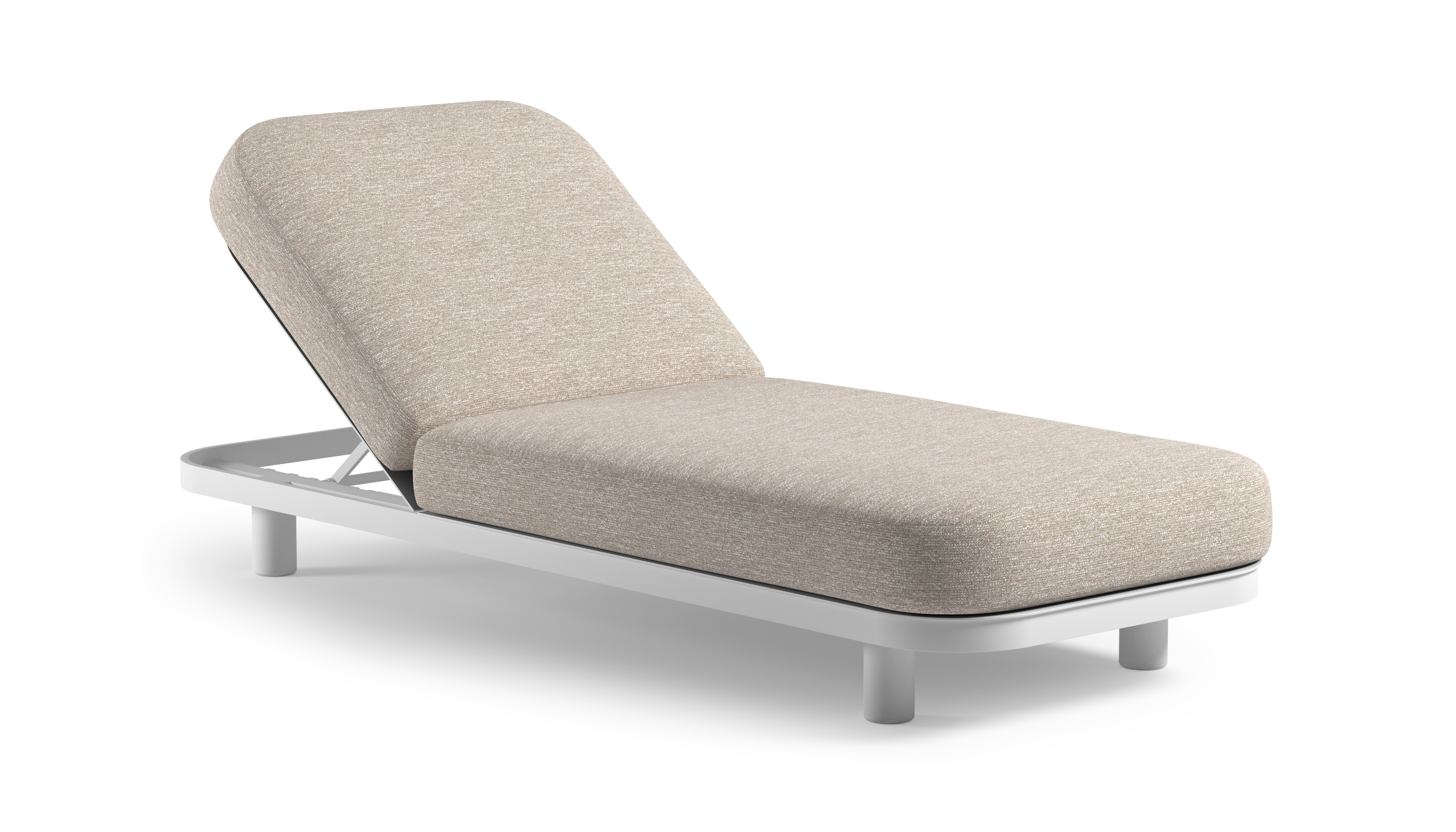 Chaise longue réglable Donato en aluminium blanc et coussin en all weather Sunbrella® luxe tundra sand | Exterioo mobilier de jardin
