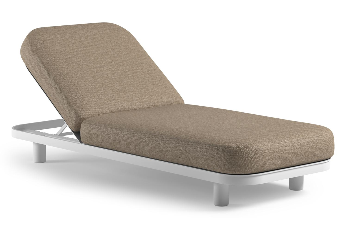 Chaise longue réglable Donato en aluminium blanc et coussin en all weather Cosytica madagascar oak | Exterioo mobilier de jardin