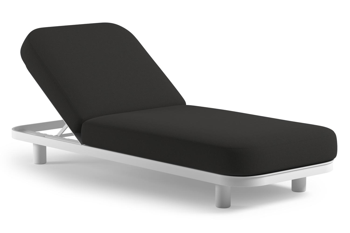Chaise longue réglable Donato en aluminium blanc et coussin en all weather Sunbrella® luxe natte sooty | Exterioo