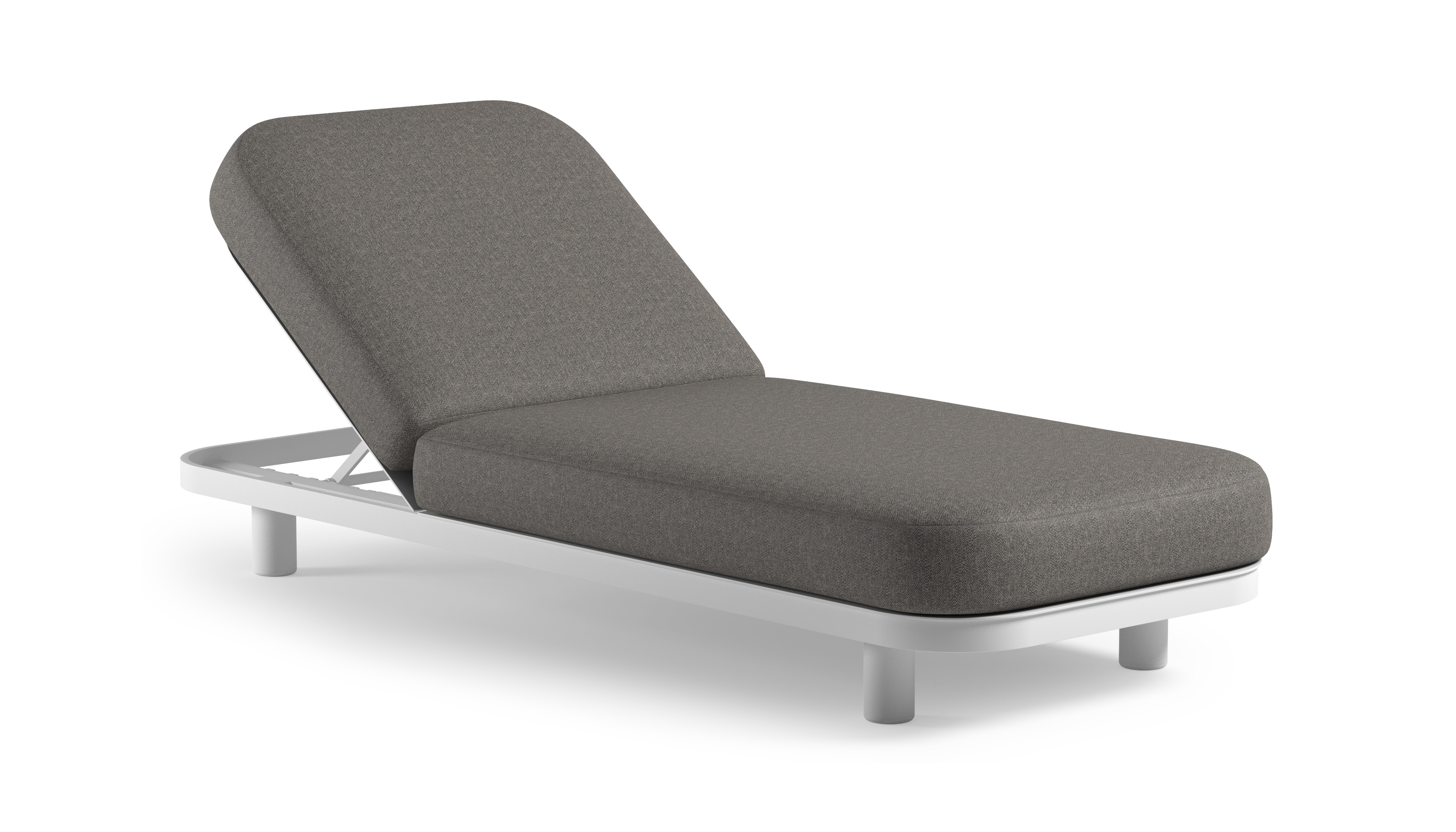 Chaise longue réglable Donato en aluminium blanc et coussin en all weather Sunbrella® luxe chartres drizzle | Exterioo