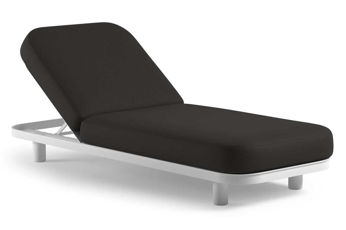 Chaise longue réglable Donato en aluminium blanc et coussin en all weather Sunbrella® luxe heritage char | Exterioo