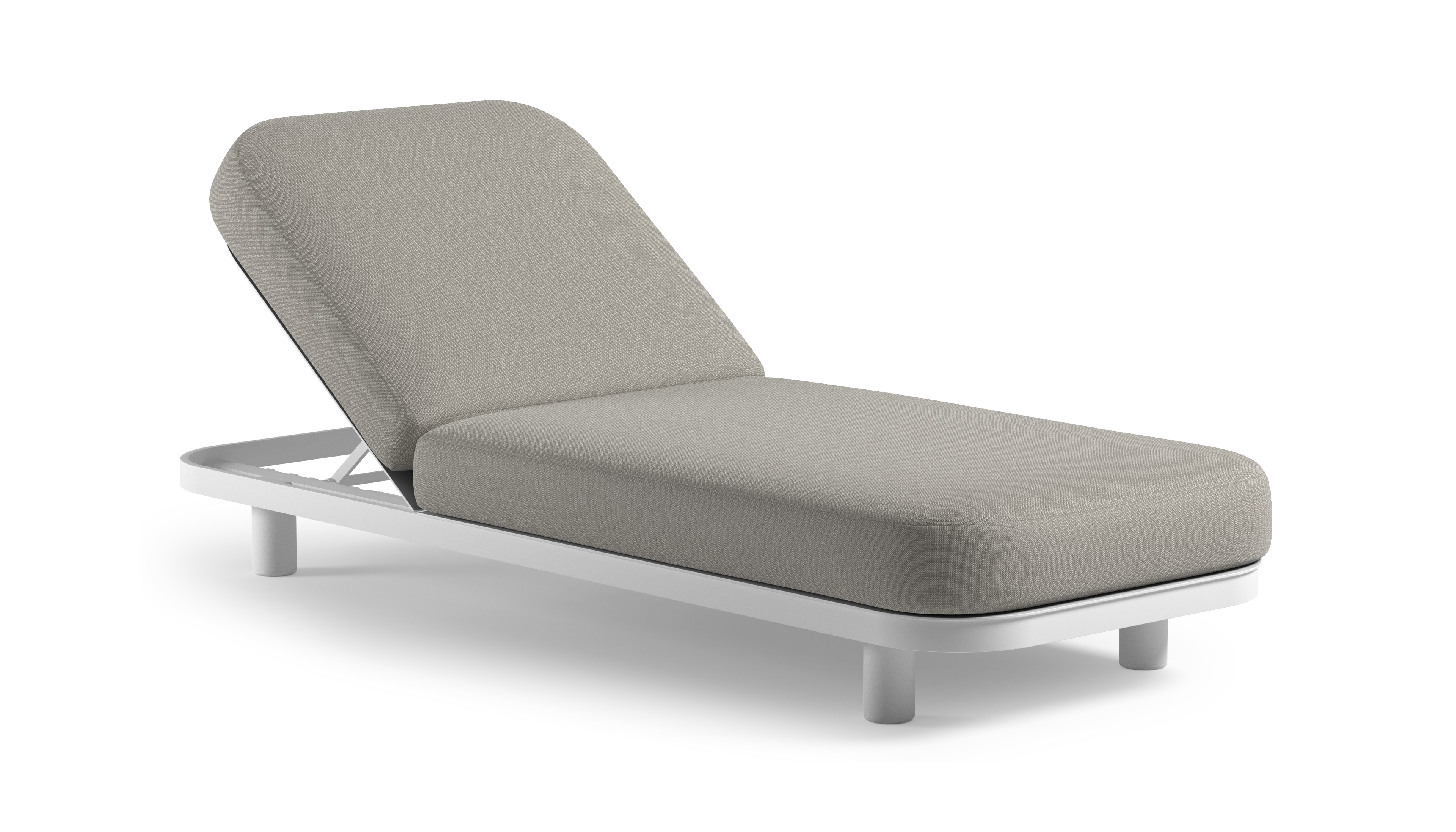 Chaise longue réglable Donato en aluminium blanc et coussin en all weather Sunbrella® luxe savane grey | Exterioo mobilier de jardin