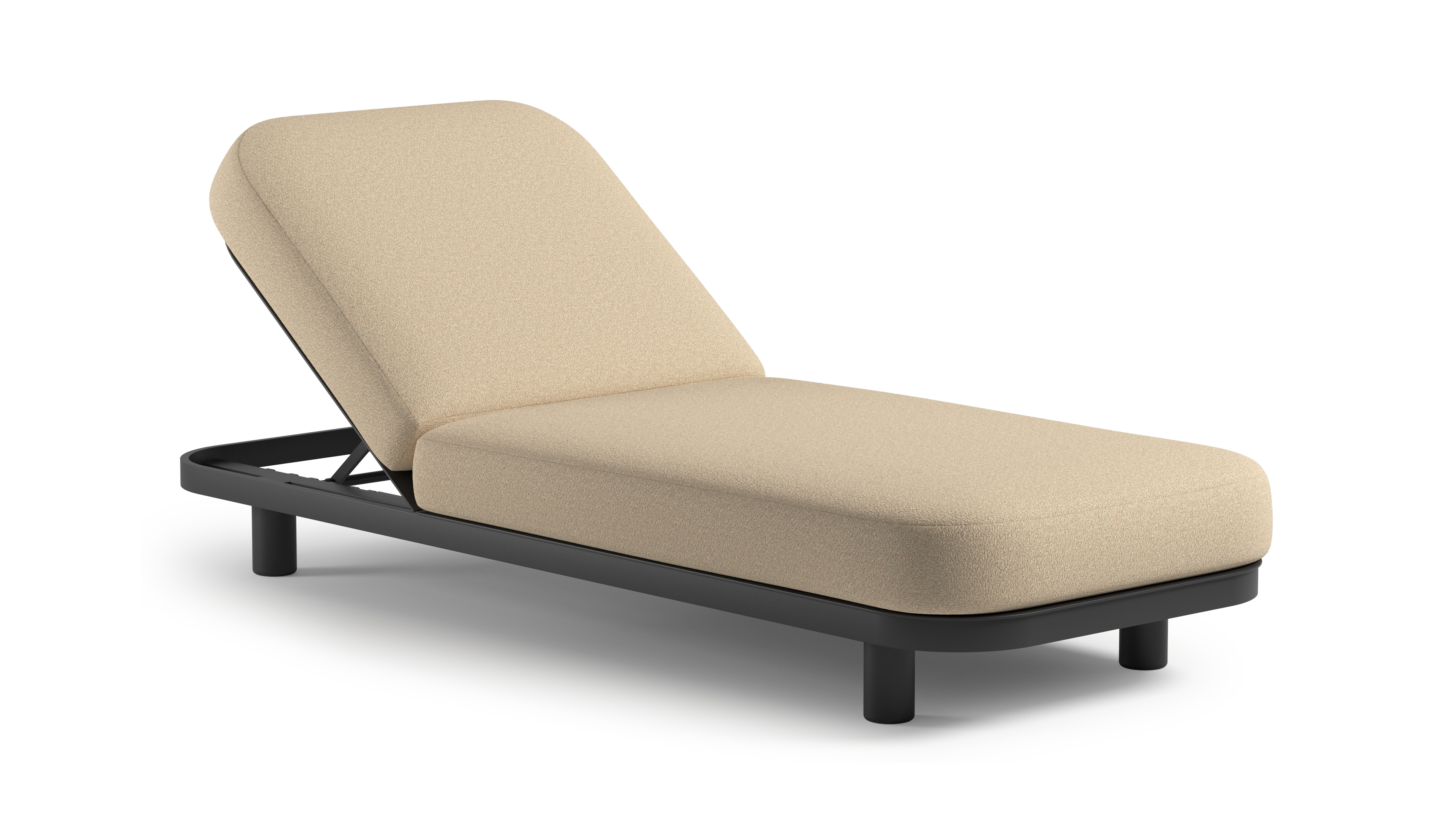 Chaise longue réglable Donato en aluminium noir et coussin en all weather Solica soul papyrus | Exterioo mobilier de jardin