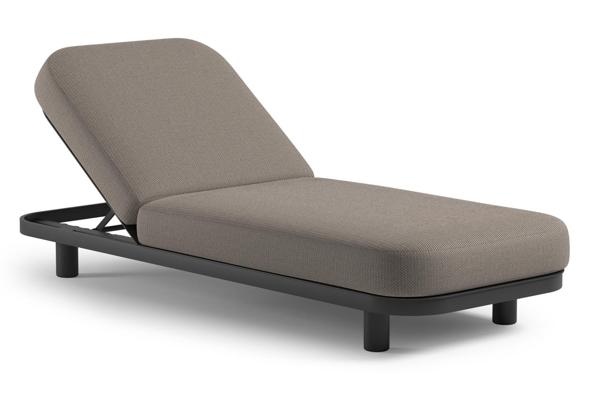 Chaise longue réglable Donato en aluminium noir et coussin en all weather Sunbrella® luxe lopi pepper | Exterioo mobilier de jardin