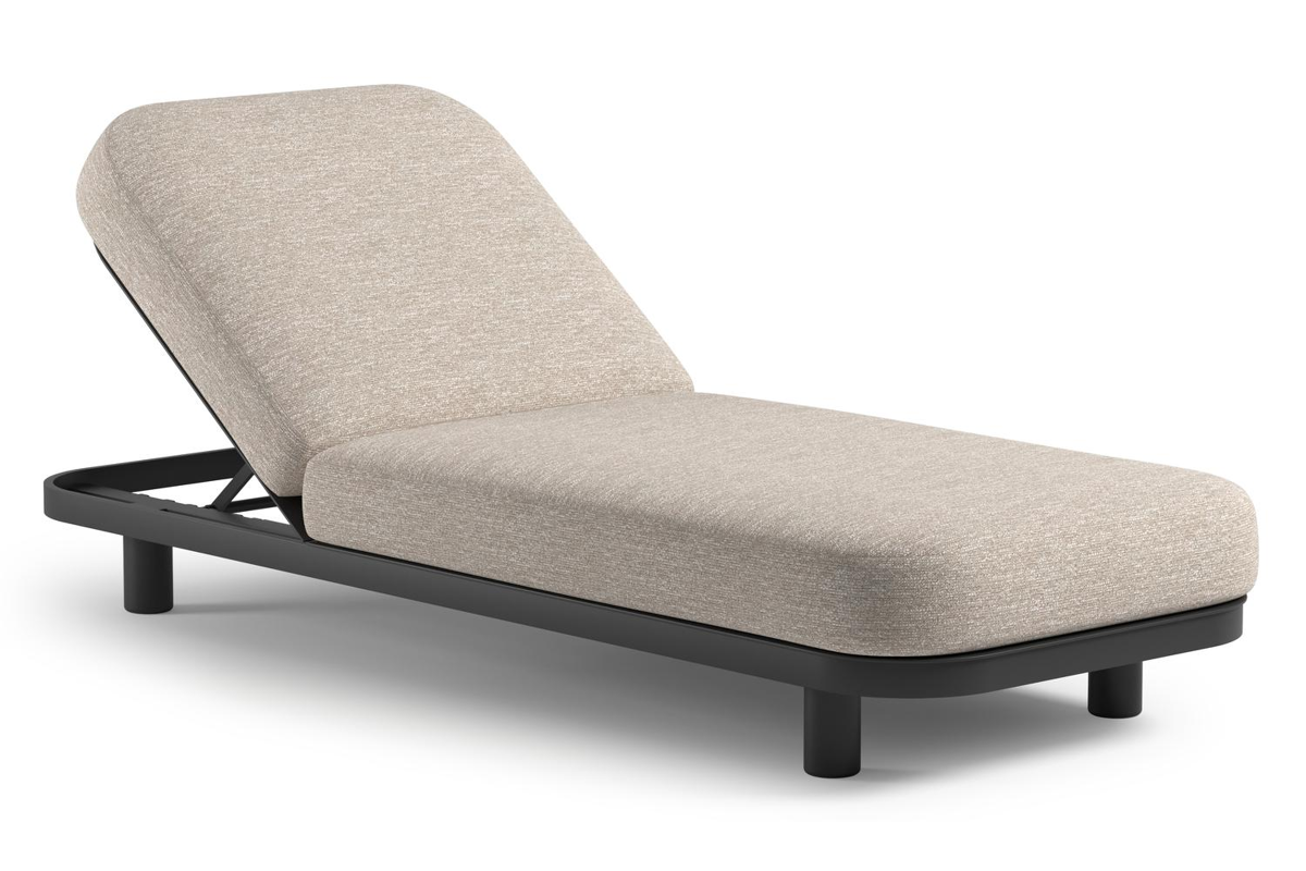 Chaise longue réglable Donato en aluminium noir et coussin en all weather Sunbrella® luxe tundra sand | Exterioo