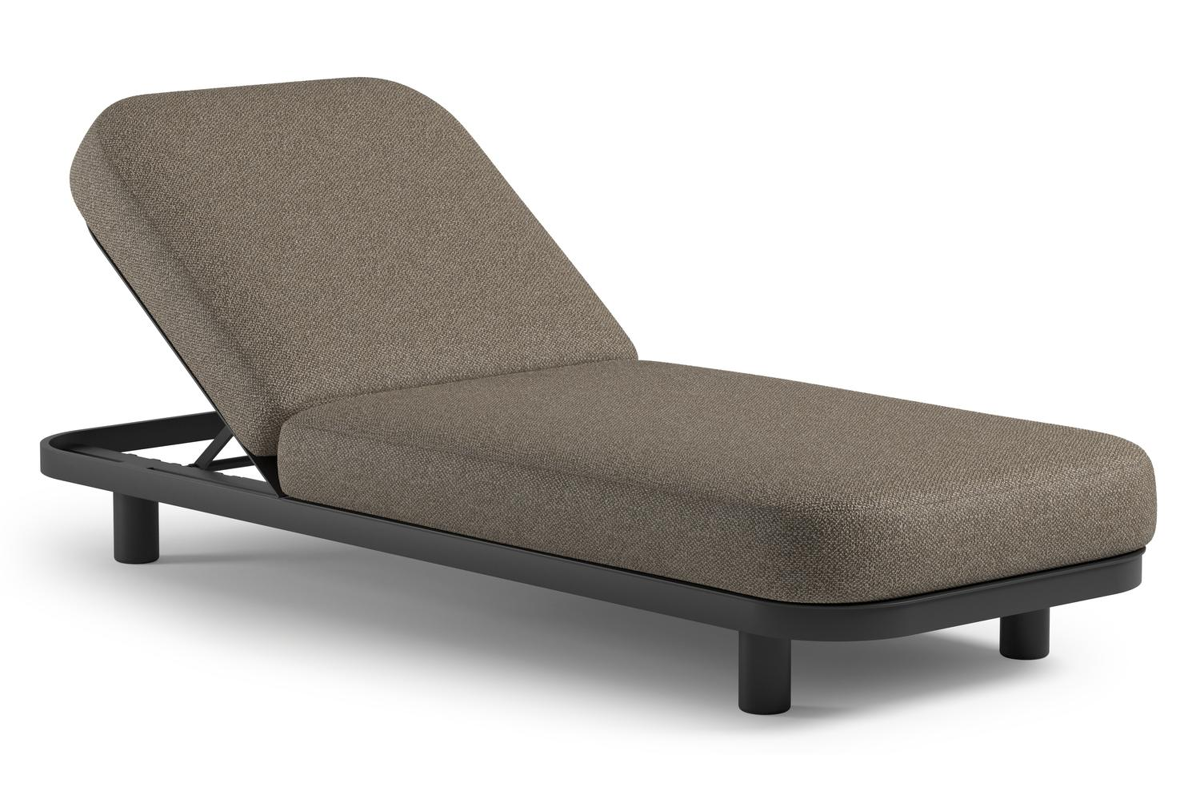 Chaise longue réglable Donato en aluminium noir et coussin en all weather Cosytica madagascar walnut | Exterioo