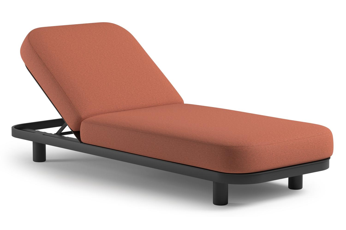Chaise longue réglable Donato en aluminium noir et coussin en all weather Sunbrella® luxe heritage rust | Exterioo
