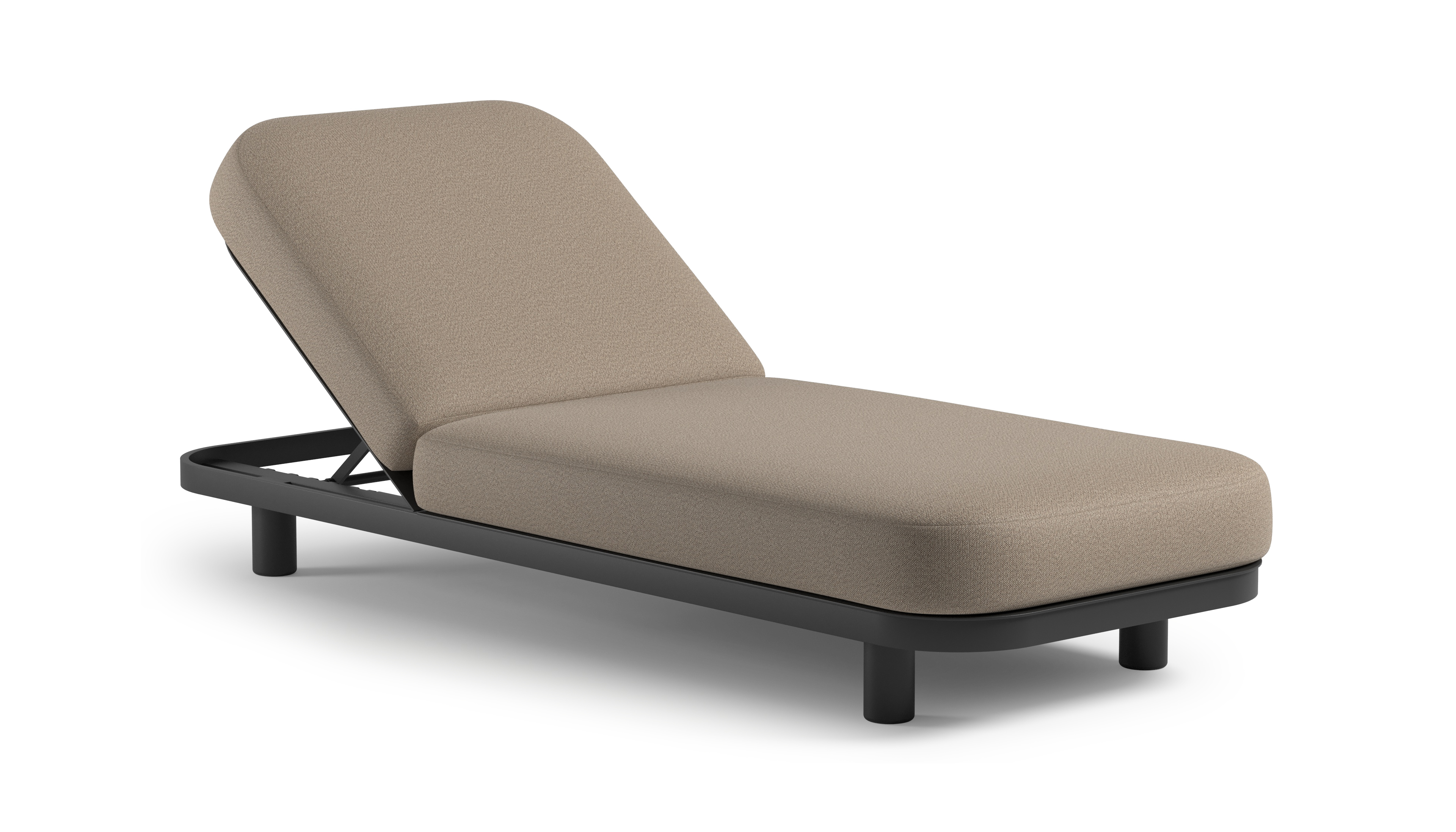 Chaise longue réglable Donato en aluminium noir et coussin en all weather Sunbrella® luxe savane coconut | Exterioo mobilier de jardin