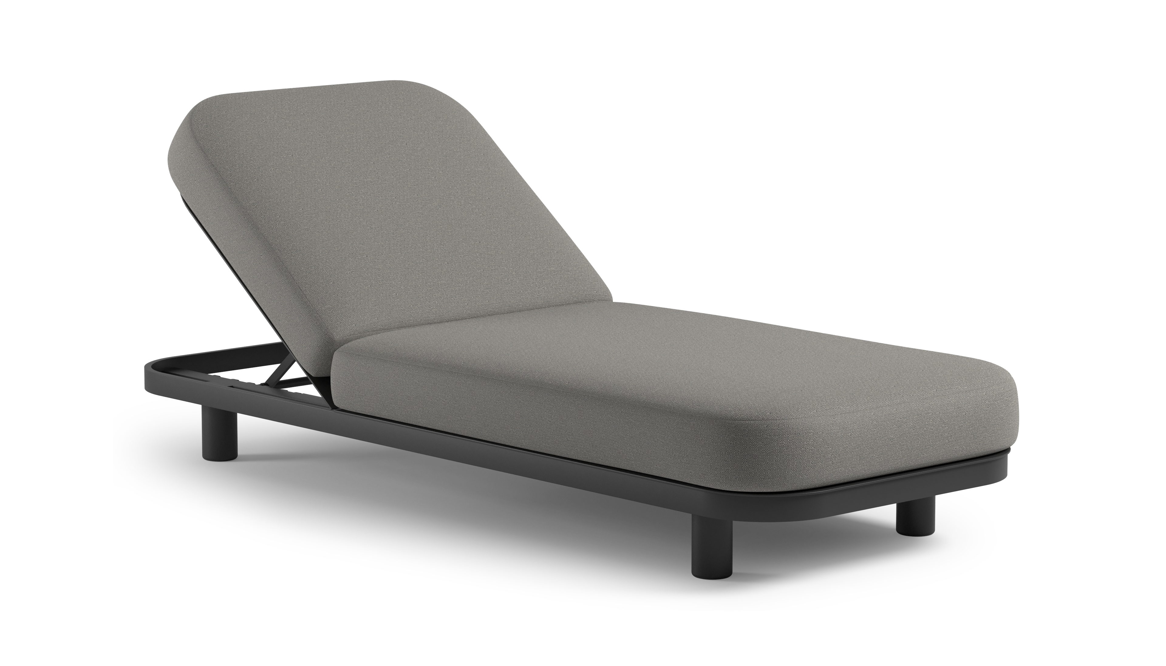 Chaise longue réglable Donato en aluminium noir et coussin en all weather Sunbrella® luxe savane zinc | Exterioo mobilier de jardin