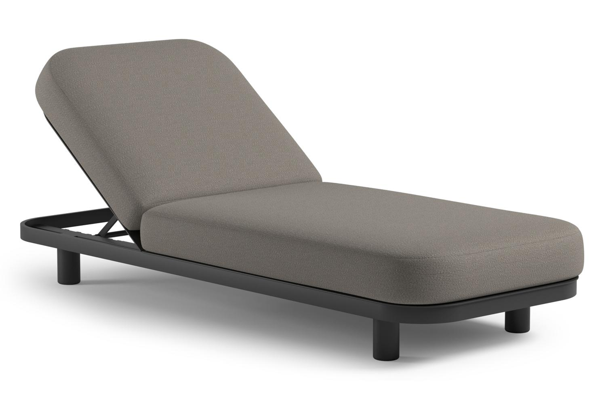 Chaise longue réglable Donato en aluminium noir et coussin en all weather Sunbrella® luxe lopi silver | Exterioo