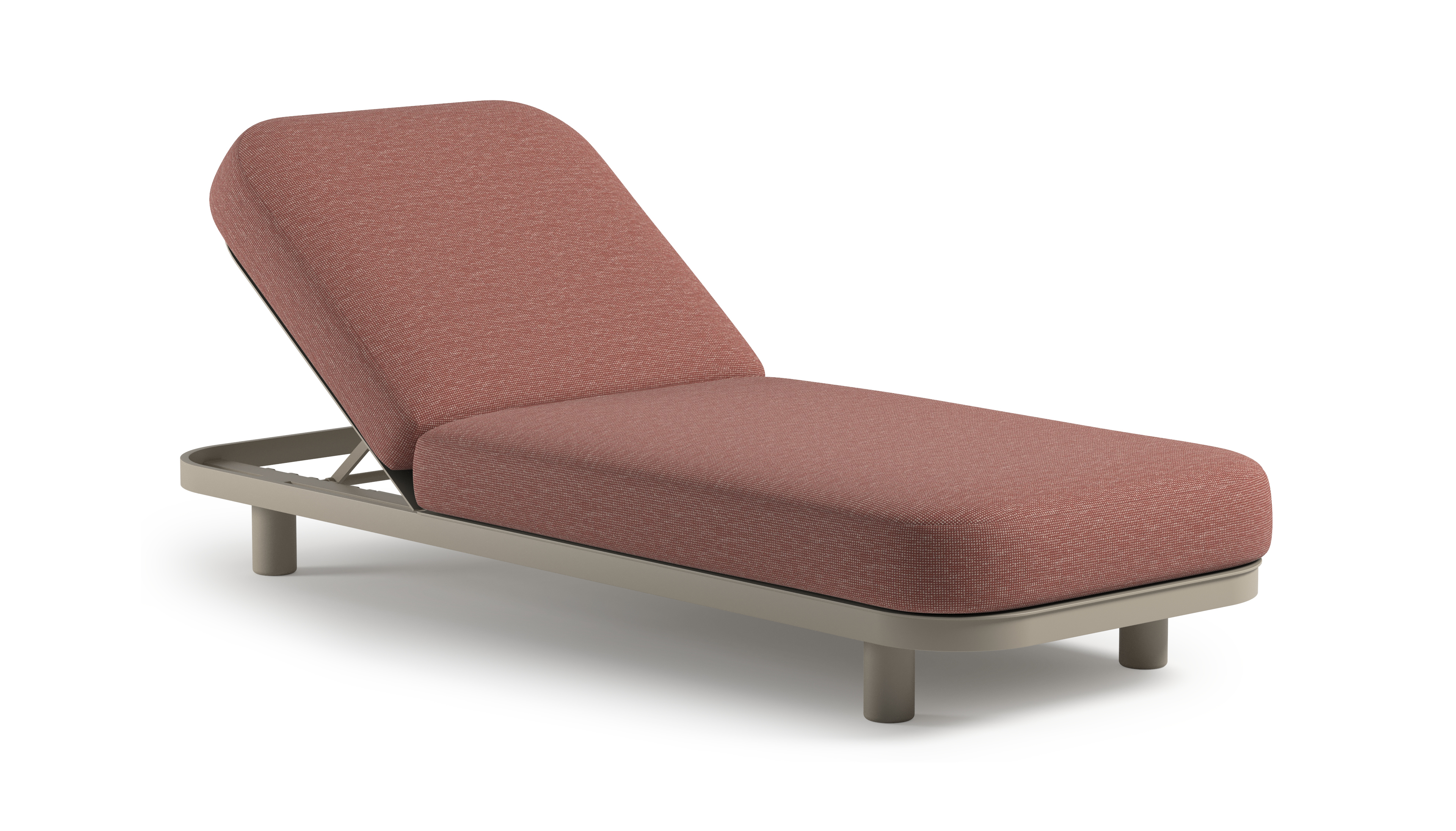 Chaise longue réglable Donato en aluminium beige avec All Weather Solica slow alezan coussin | Exterioo mobilier de jardin