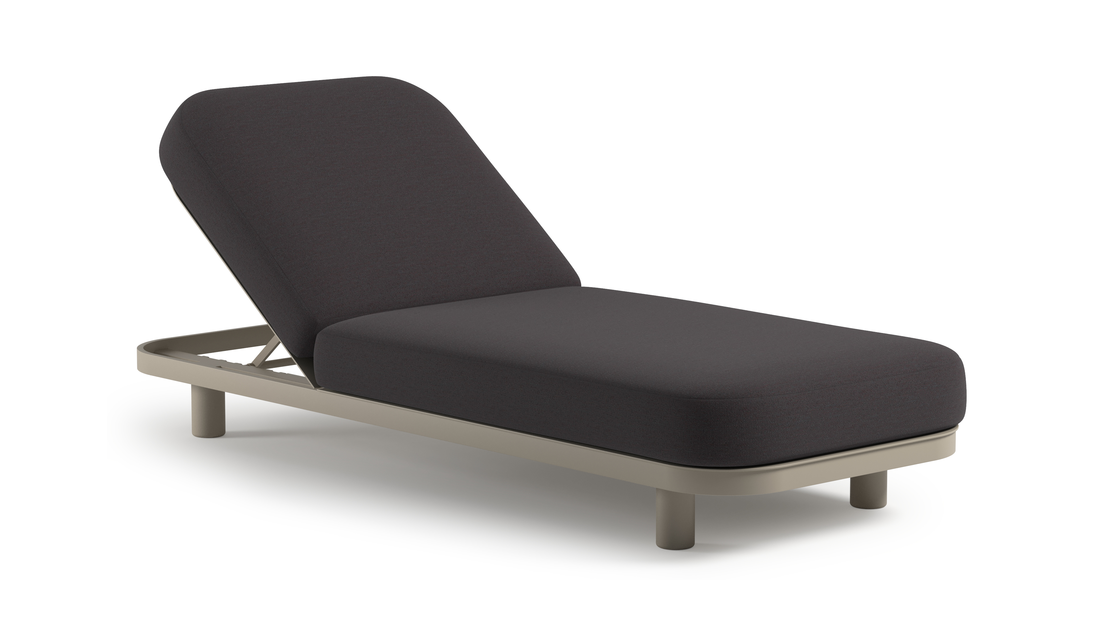 Chaise longue réglable Donato en aluminium beige avec All Weather Sunbrella® luxe tundra red coussin | Exterioo mobilier de jardin