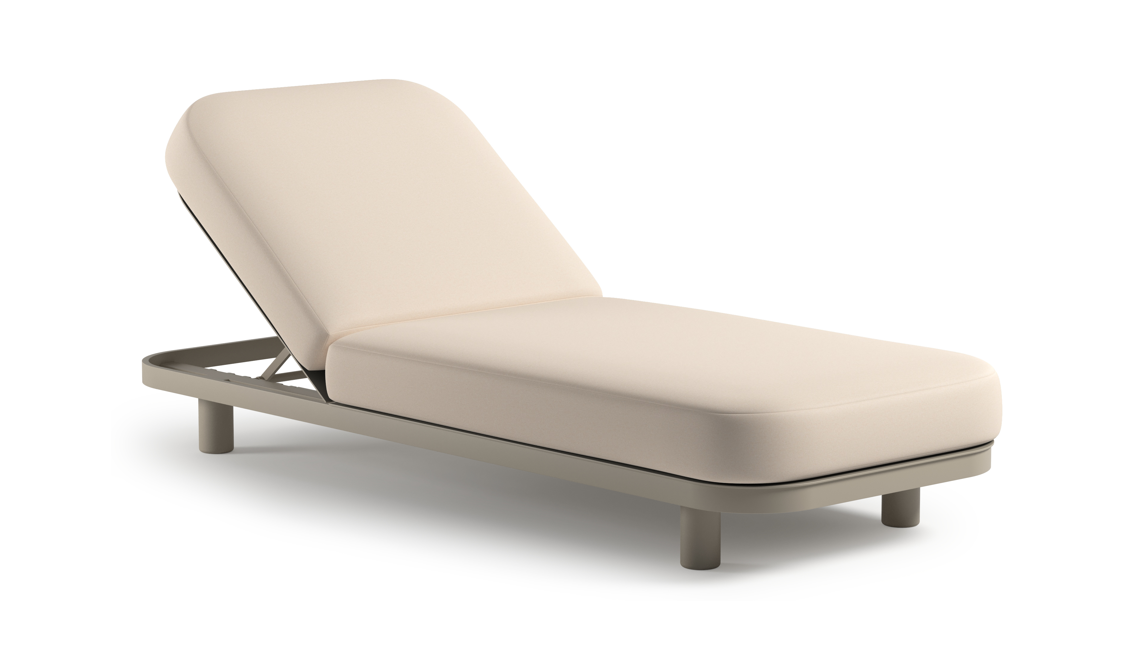 Chaise longue réglable Donato en aluminium beige avec All Weather Sunbrella® luxe natte linen chalk coussin | Exterioo mobilier de jardin
