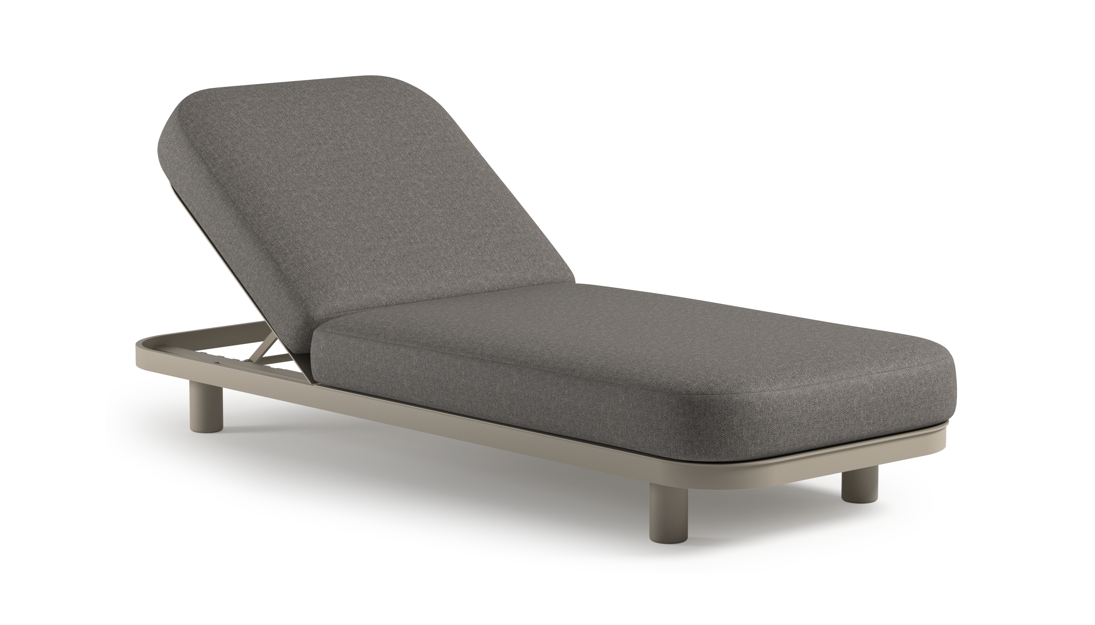 Chaise longue réglable Donato en aluminium beige avec All Weather Sunbrella® luxe chartres drizzle coussin | Exterioo mobilier de jardin