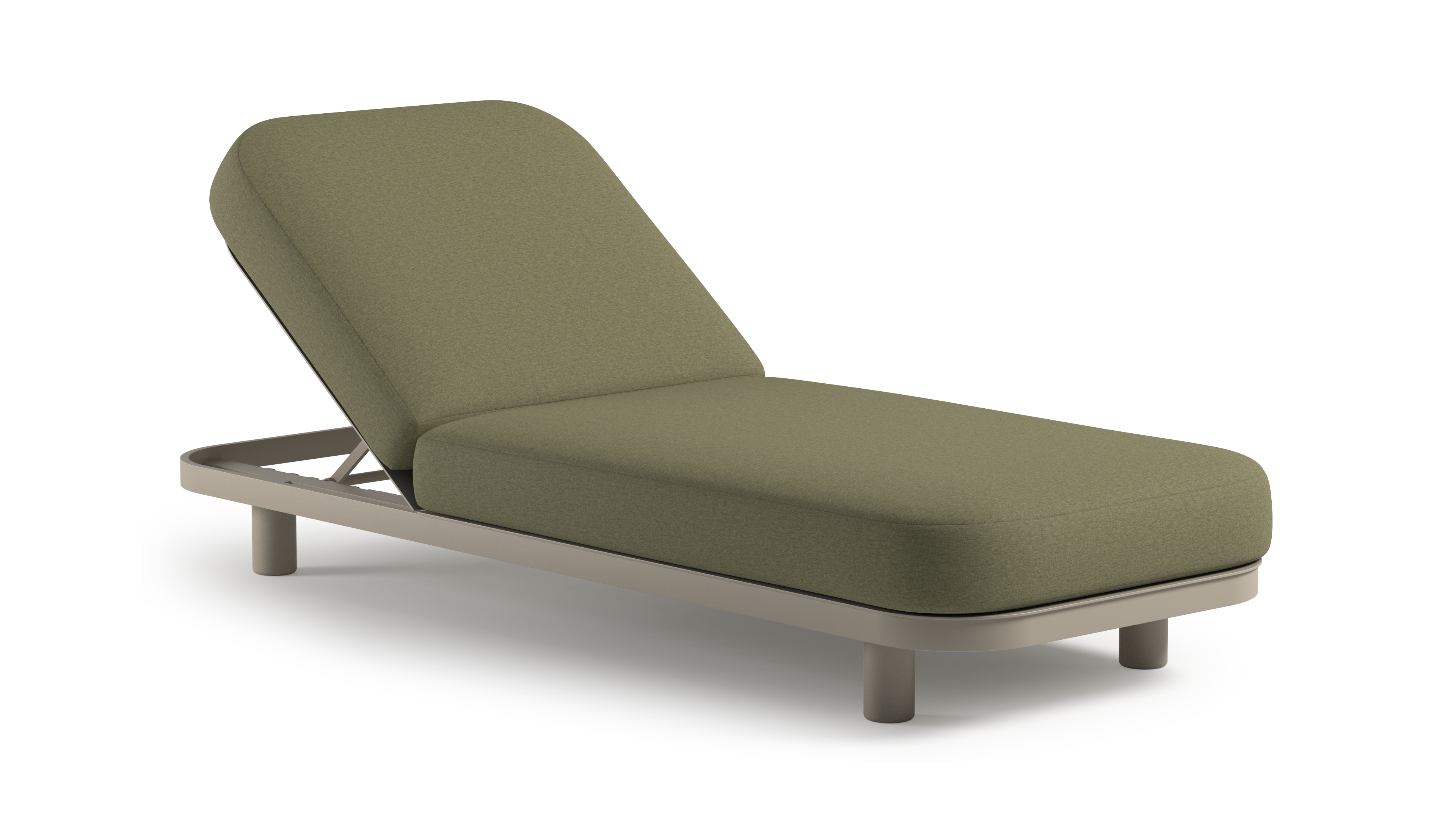 Chaise longue réglable Donato en aluminium beige avec All Weather Sunbrella® luxe heritage leaf coussin | Exterioo mobilier de jardin