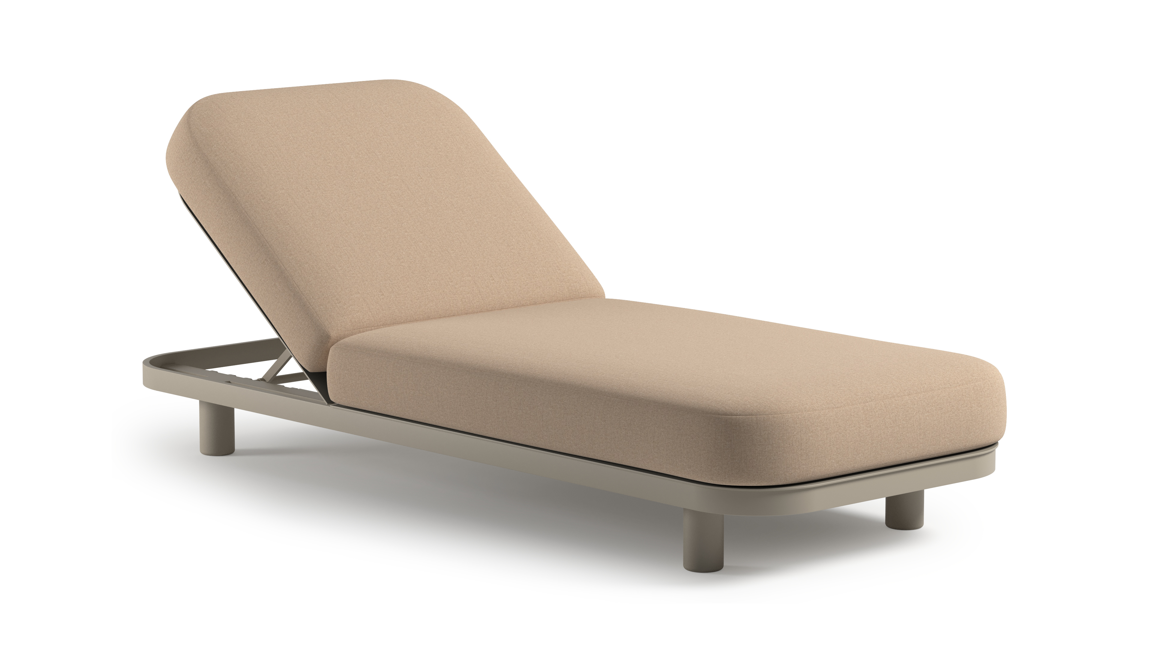 Chaise longue réglable Donato en aluminium beige avec All Weather Sunbrella® luxe natte heather beige coussin | Exterioo mobilier de jardin