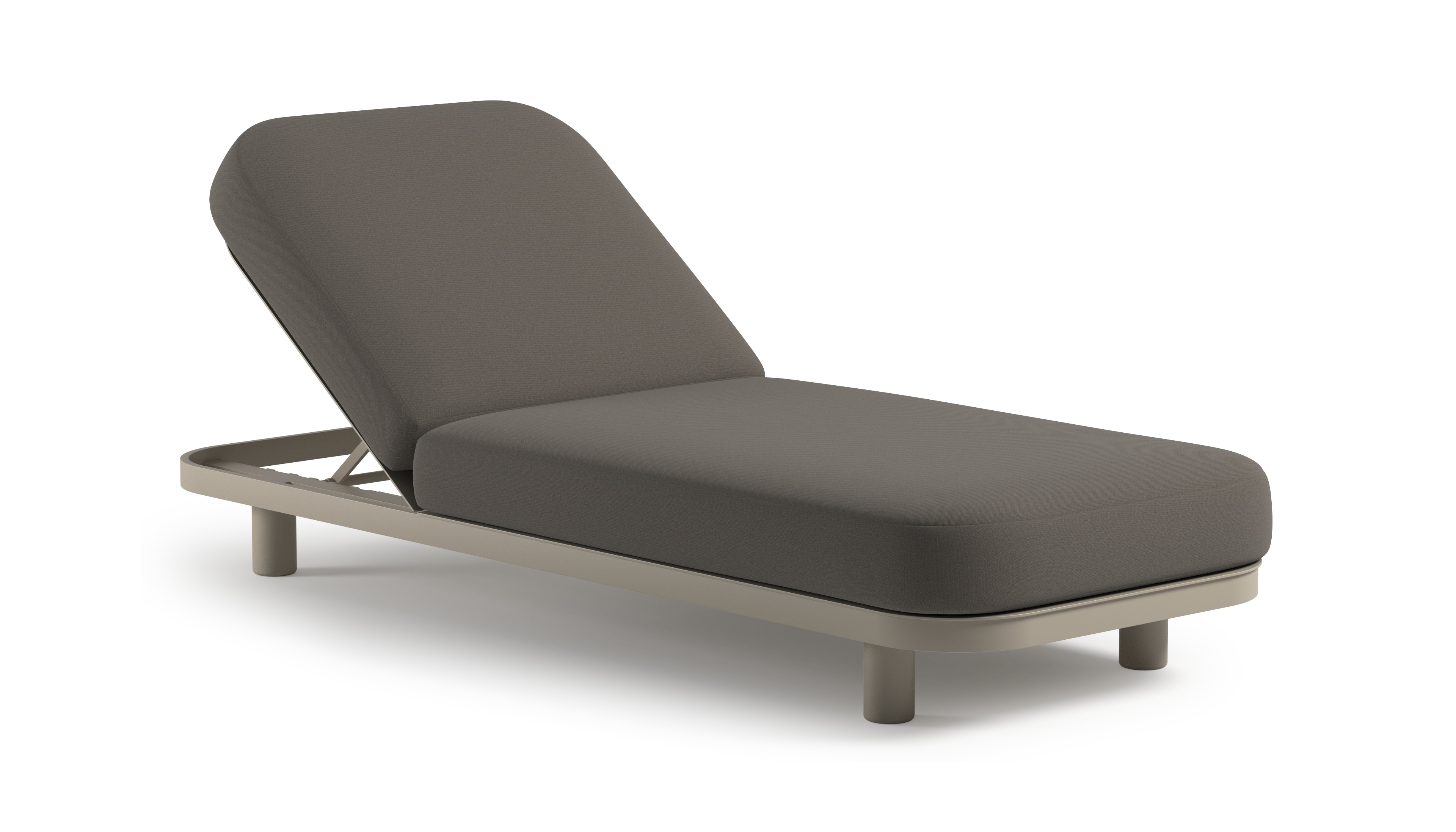 Chaise longue réglable Donato en aluminium beige avec All Weather Sunbrella® luxe natte carbon beige coussin | Exterioo mobilier de jardin