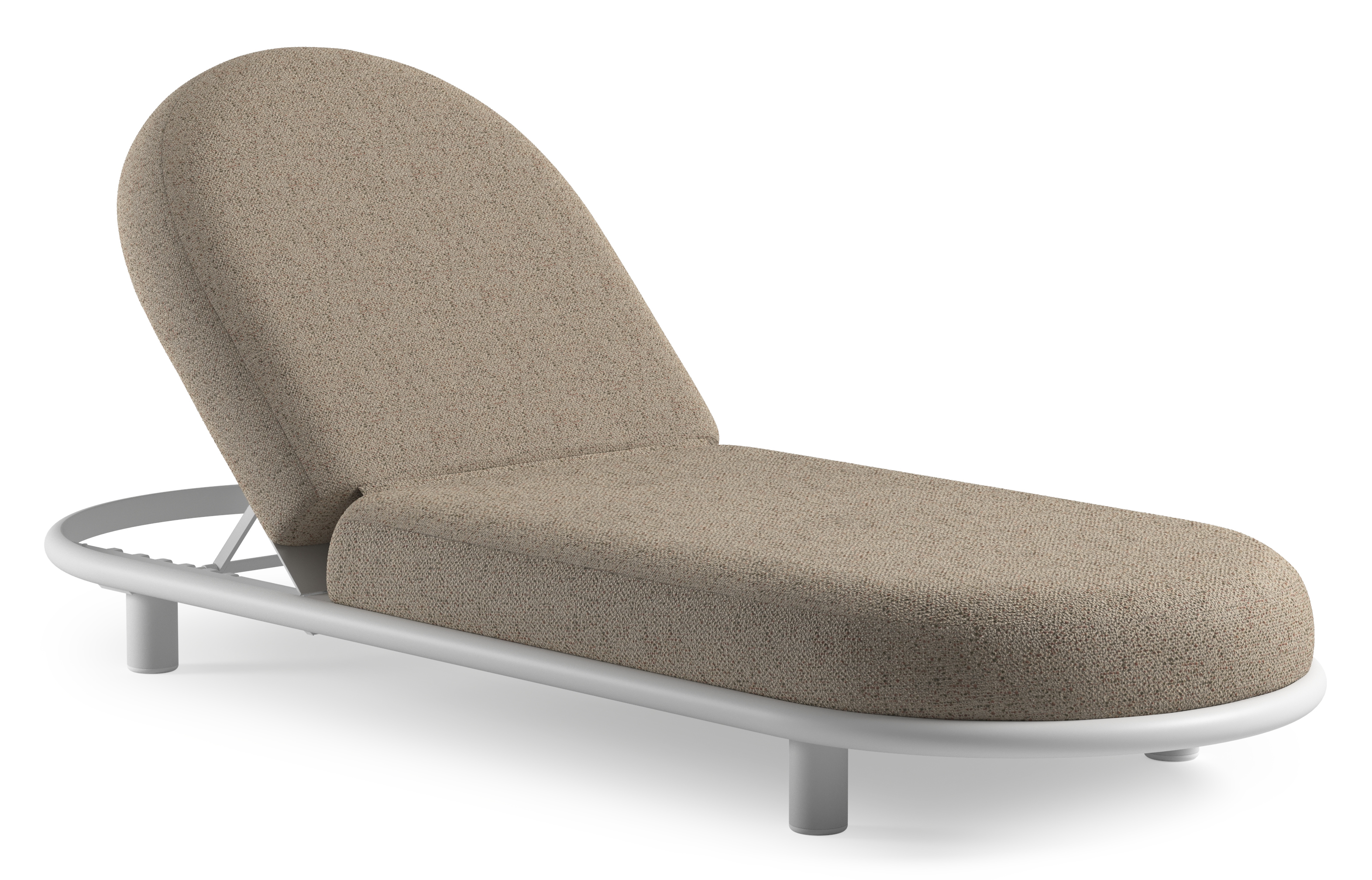 Chaise longue réglable Lomano en aluminium blanc avec bora jungle all weather cosytica coussin | Exterioo mobilier de jardin