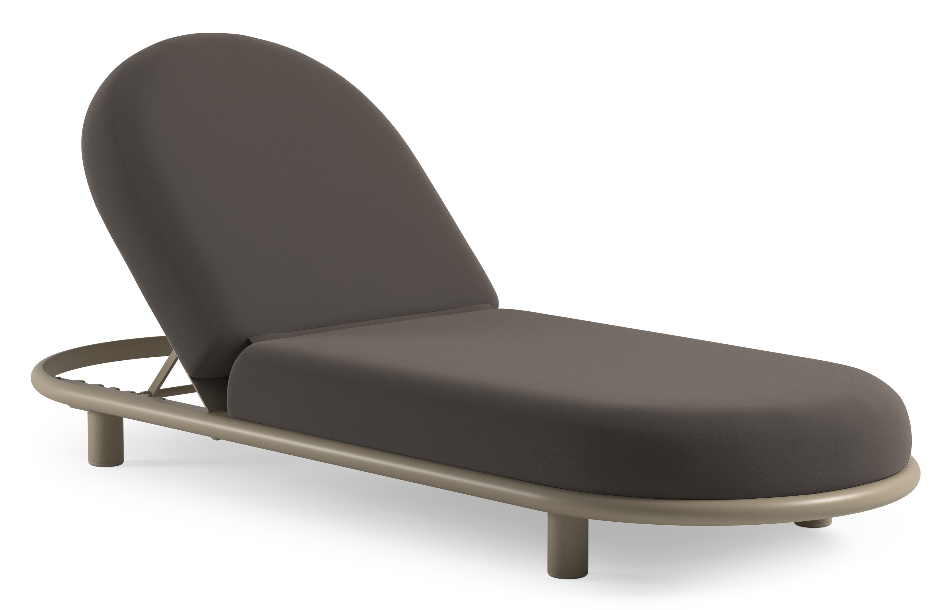 Chaise longue réglable Lomano en aluminium beige avec natte nature grey all weather sunbrella® luxe coussin | Exterioo mobilier de jardin