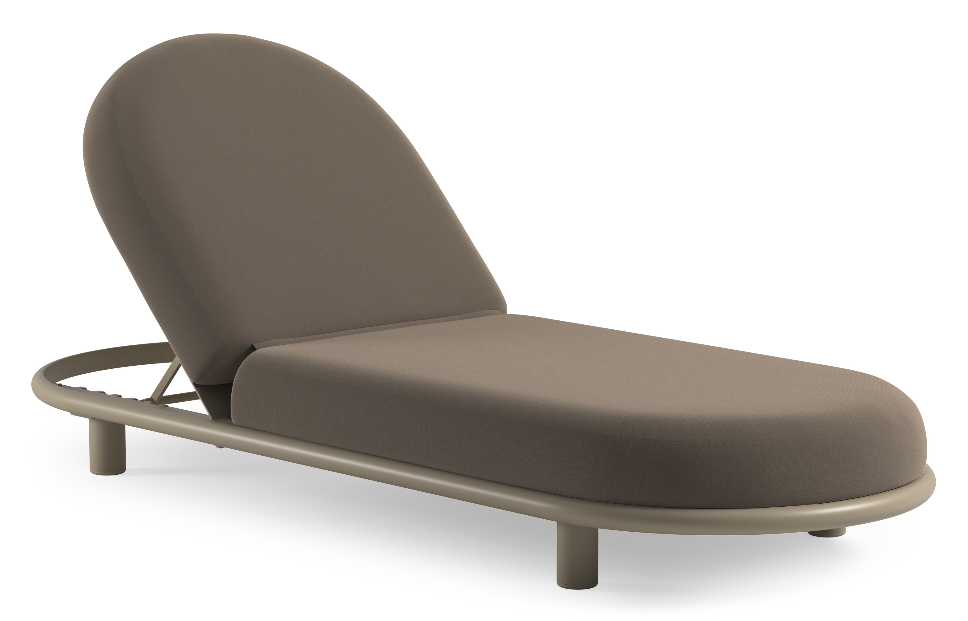 Chaise longue réglable Lomano en aluminium beige avec natte heather grey all weather sunbrella® luxe coussin | Exterioo mobilier de jardin