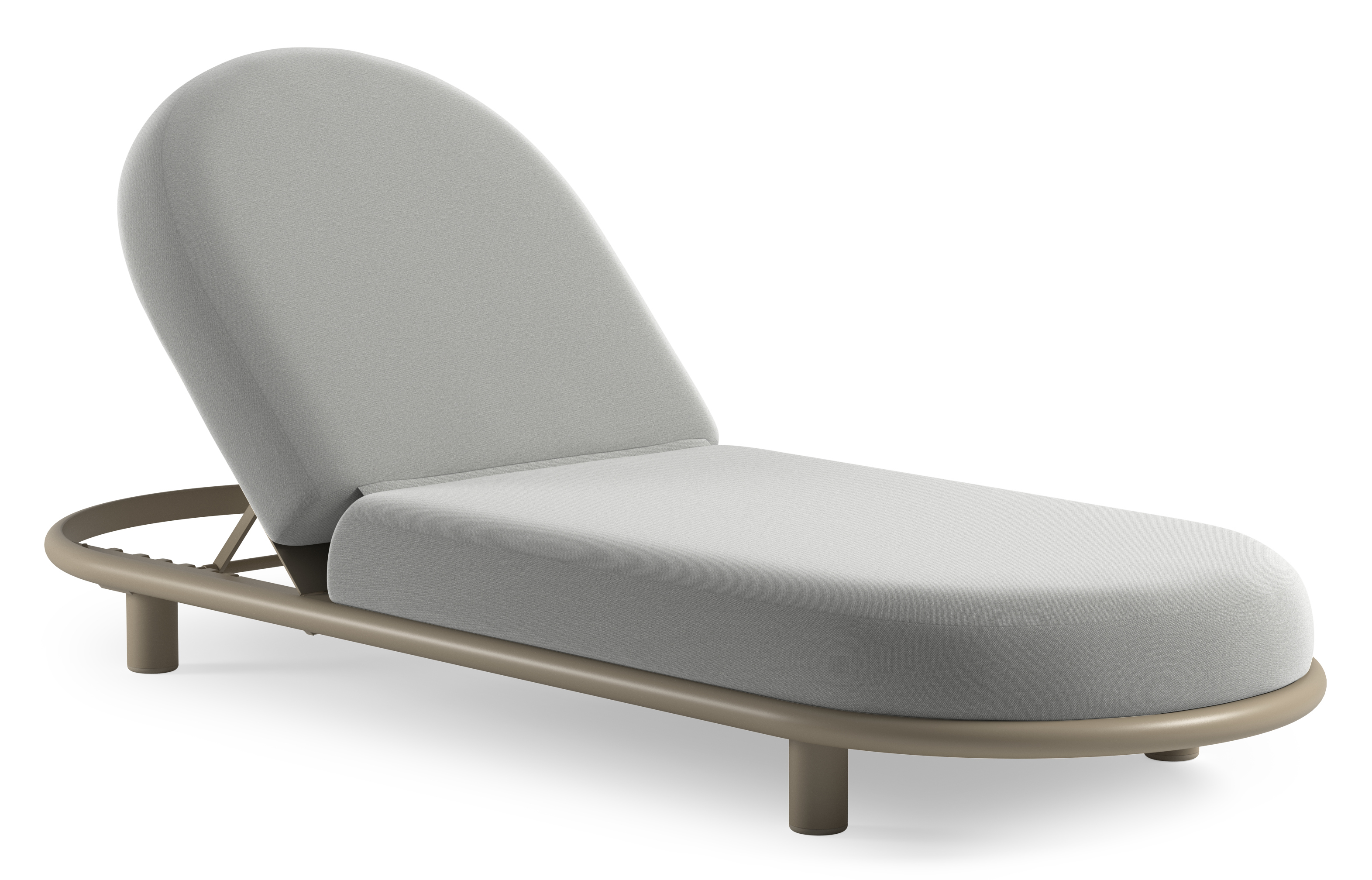 Chaise longue réglable Lomano en aluminium beige avec natte grey chine all weather sunbrella® luxe coussin | Exterioo mobilier de jardin