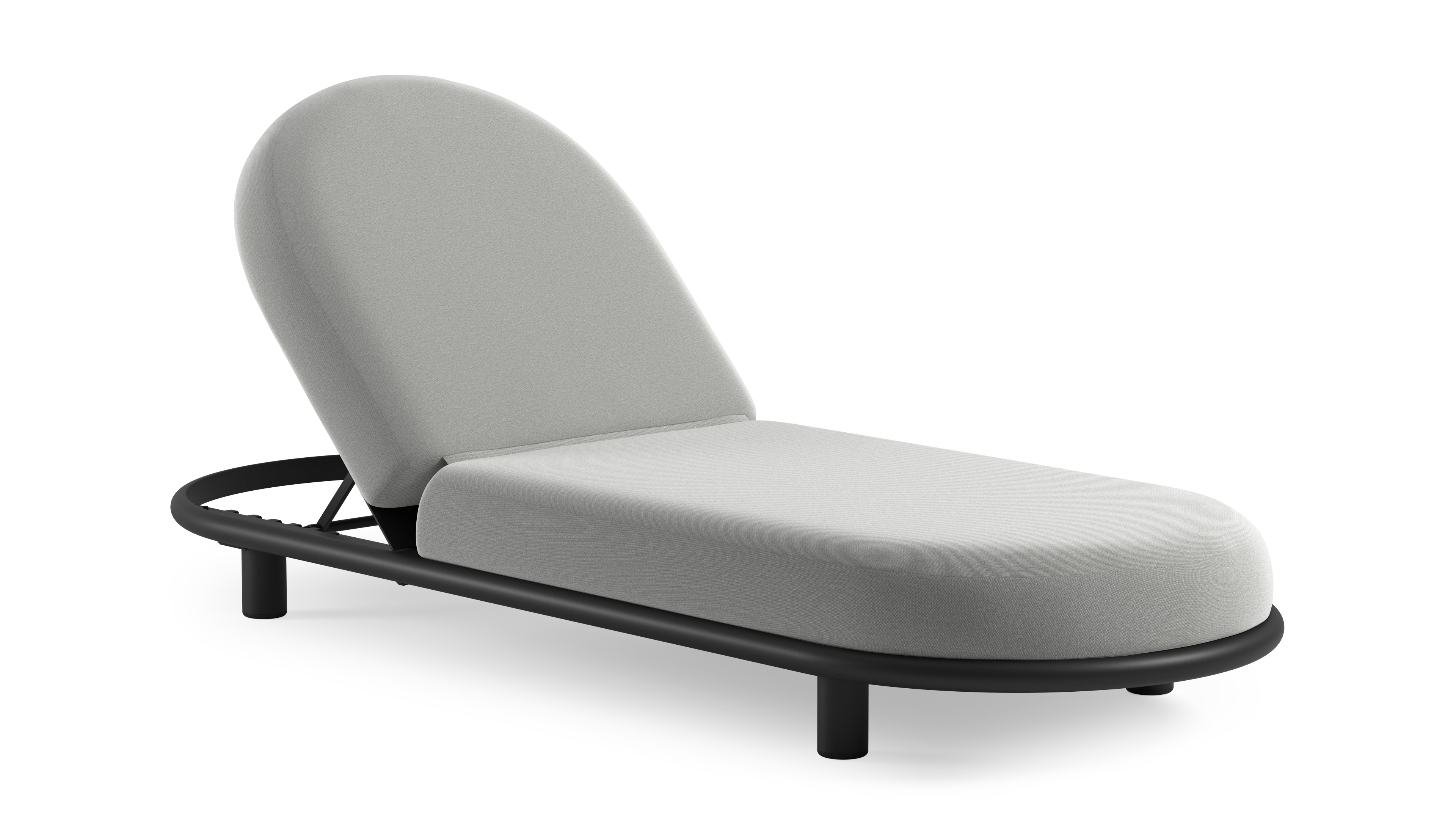 Chaise longue réglable Lomano en aluminium noir avec natte grey chine all weather sunbrella® luxe coussin | Exterioo mobilier de jardin