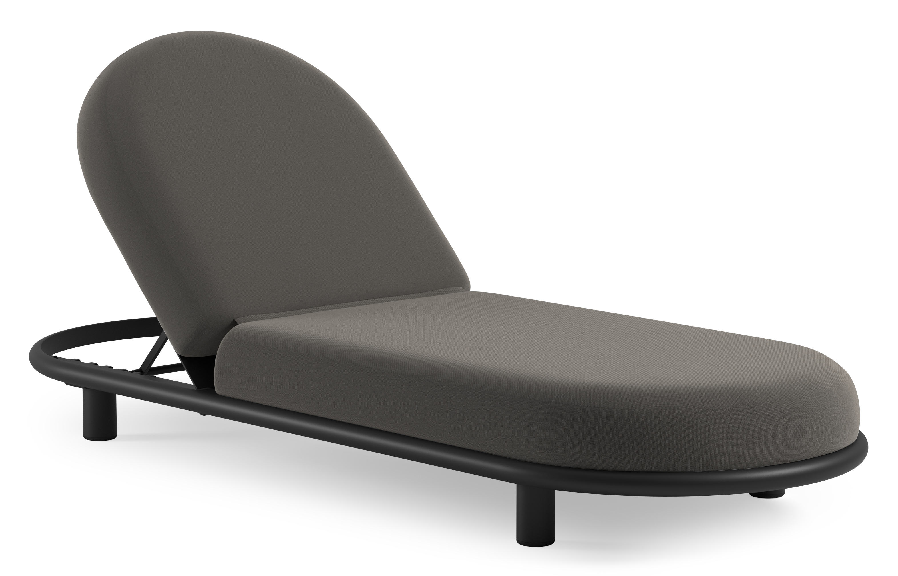 Chaise longue réglable Lomano en aluminium noir avec natte dark taupe all weather sunbrella® luxe coussin | Exterioo mobilier de jardin