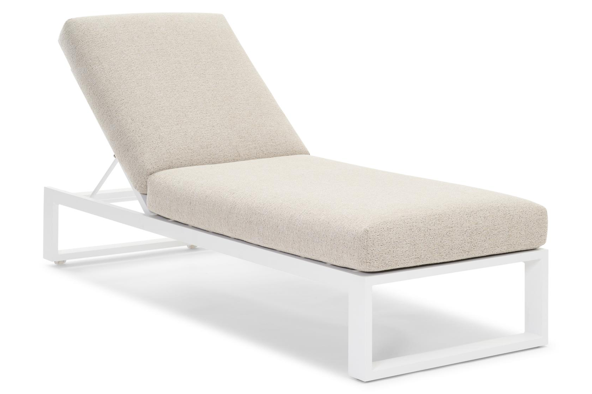 Verato verstelbaar ligbed in wit aluminium met marbella beige all weather cosytica kussen | Exterioo