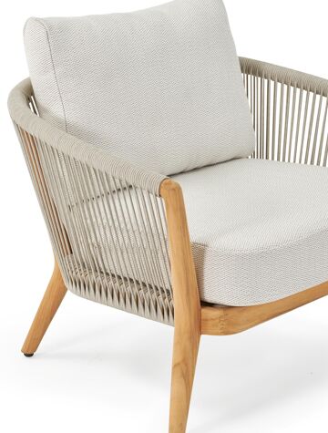 grâce à l'utilisation de matériaux naturels, l'ensemble de balcon Orso prend toute sa place dans votre jardin ou sur votre terrasse. Le cadre est fabriqué en teck FSC et le siège est fini avec une corde beige. Les coussins d'assise et de dossier de luxe Sunbrella sont inclus. Ces coussins sont de la plus haute qualité de notre gamme. Ils peuvent parfaitement rester dehors dans différentes conditions météorologiques.