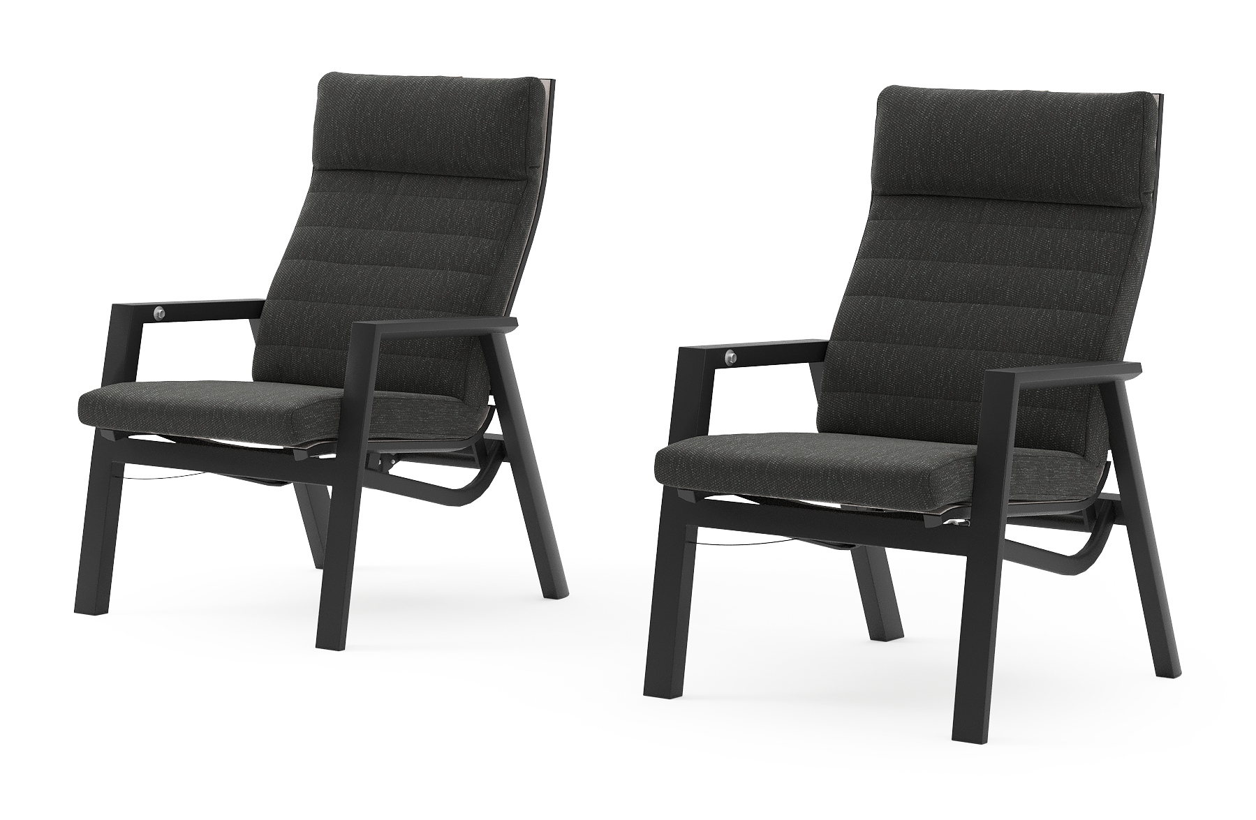 Ensemble de 2 fauteuils de jardin Prato en aluminium noir et coussins en weather+ softtouch sky black | Exterioo mobilier de jardin