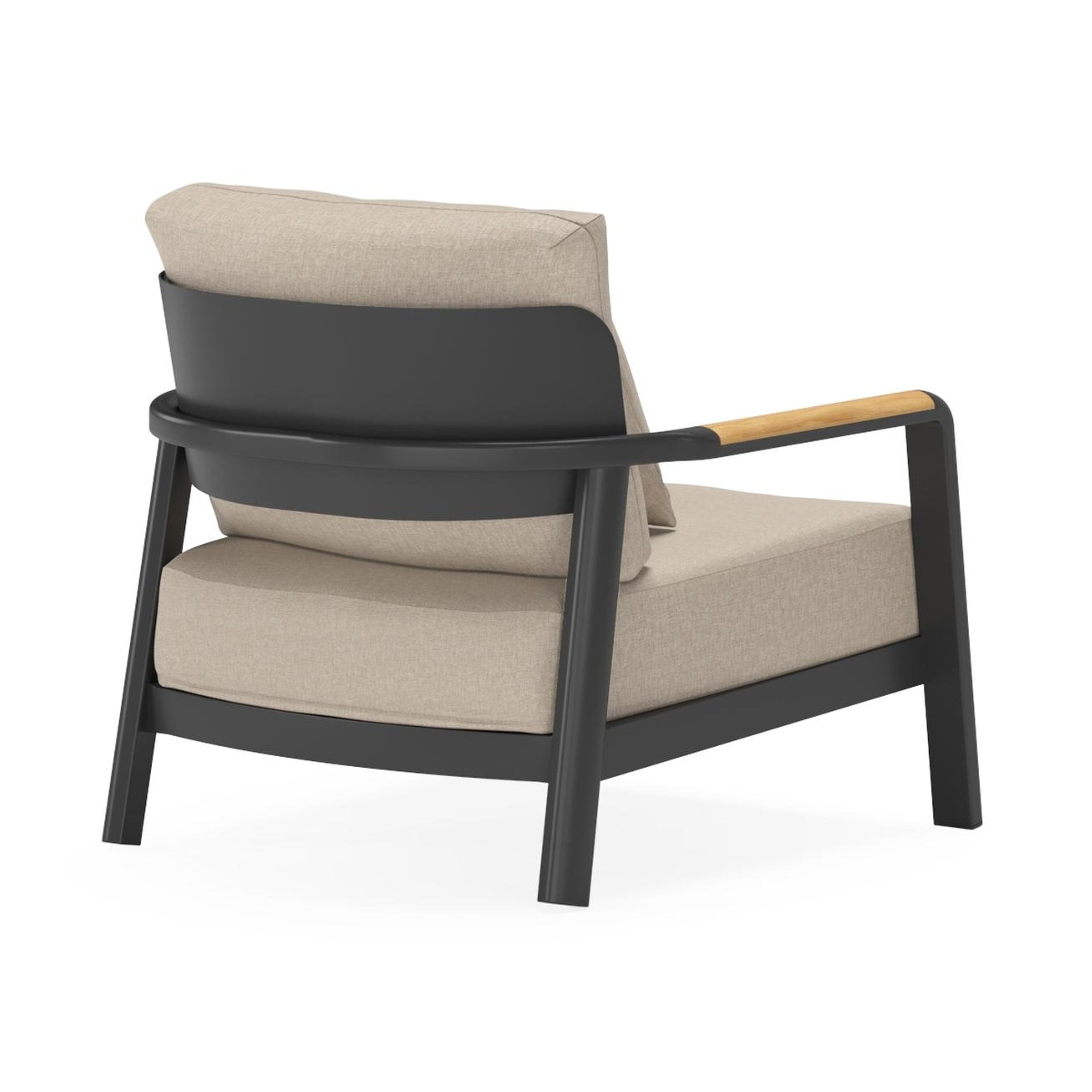 L'armature du salon de jardin est en aluminium inoxydable, un matériau robuste mais léger, qui est facile à déplacer. La surface présente une finition lisse, de sorte qu’elle n'attire pas la saleté et est facile à entretenir. Le revêtement poudré garantit la résistance aux UV et aux intempéries de votre meuble. Les accoudoirs en teck sont synonymes de qualité exceptionnelle et de design naturel. Le teck est une essence de qualité qui se caractérise par sa dureté.