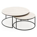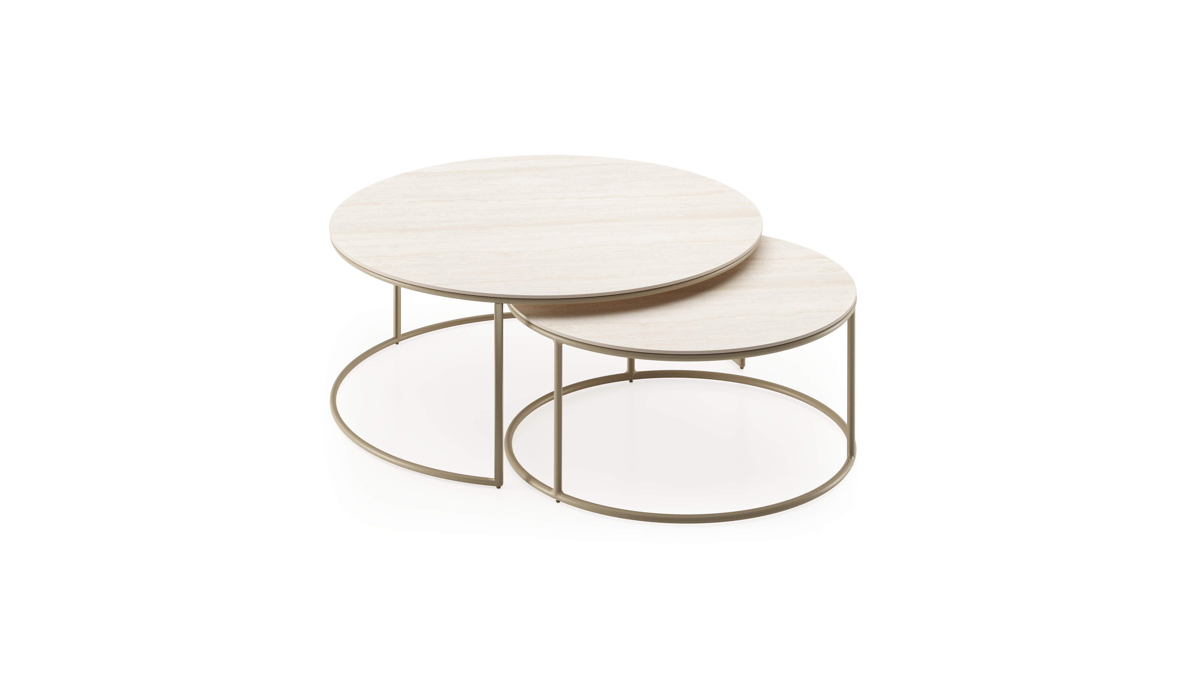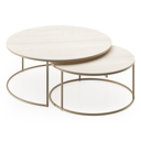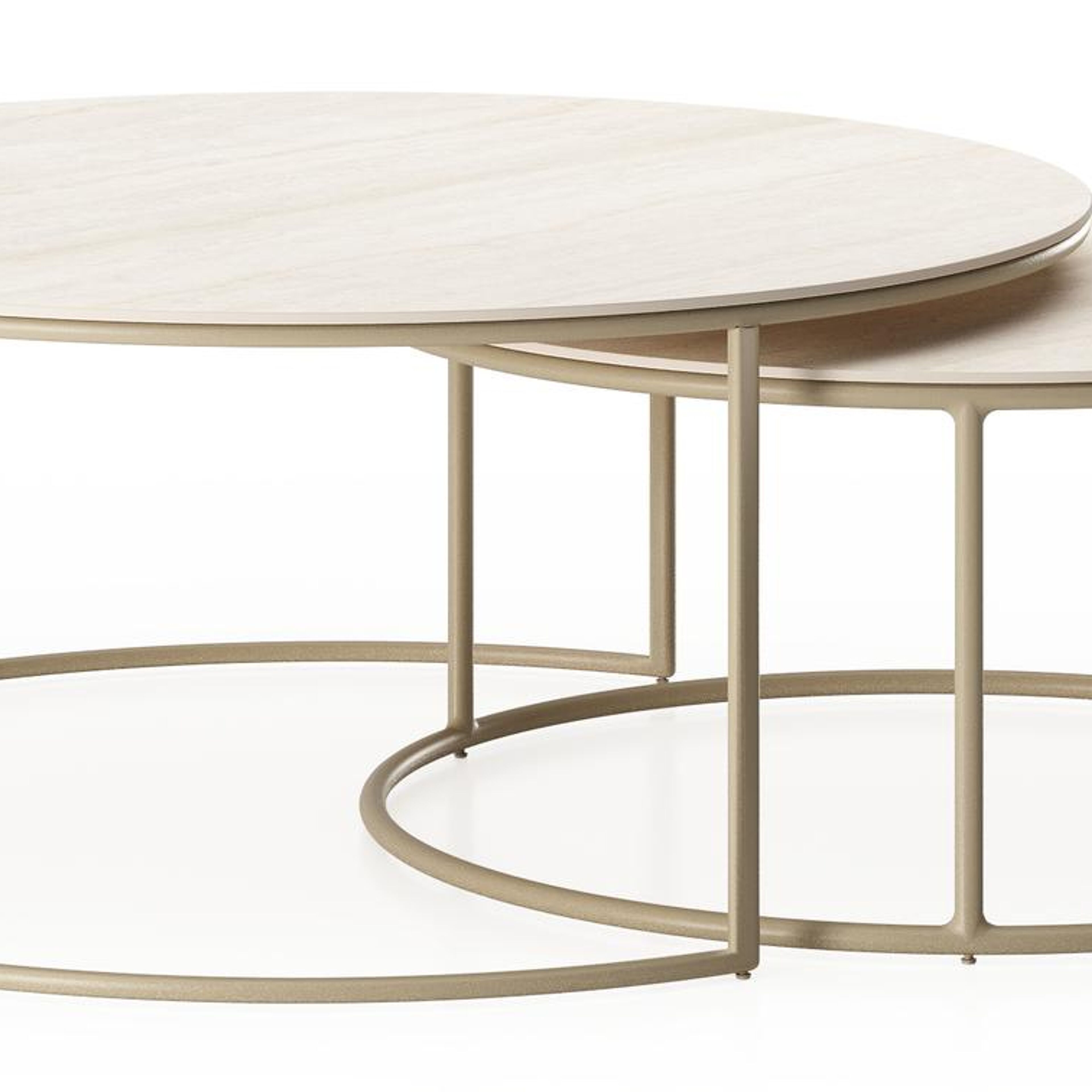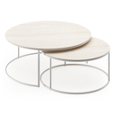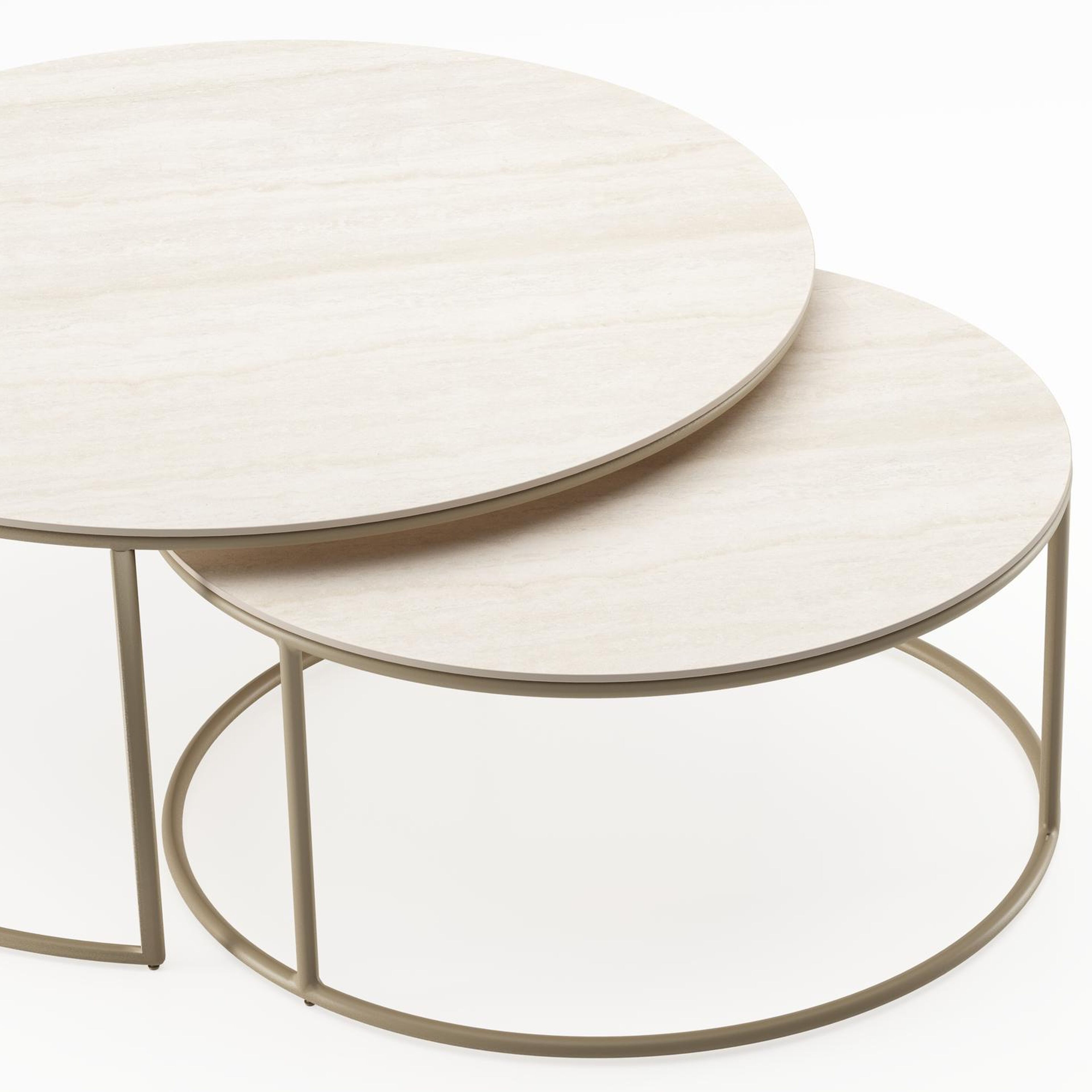 Ensemble de 2 tables d'appoint Fano ronde en aluminium beige et céramique pleine Travertino Bianco - Diam. 85 x Haut. 35 cm | Exterioo mobilier de jardin