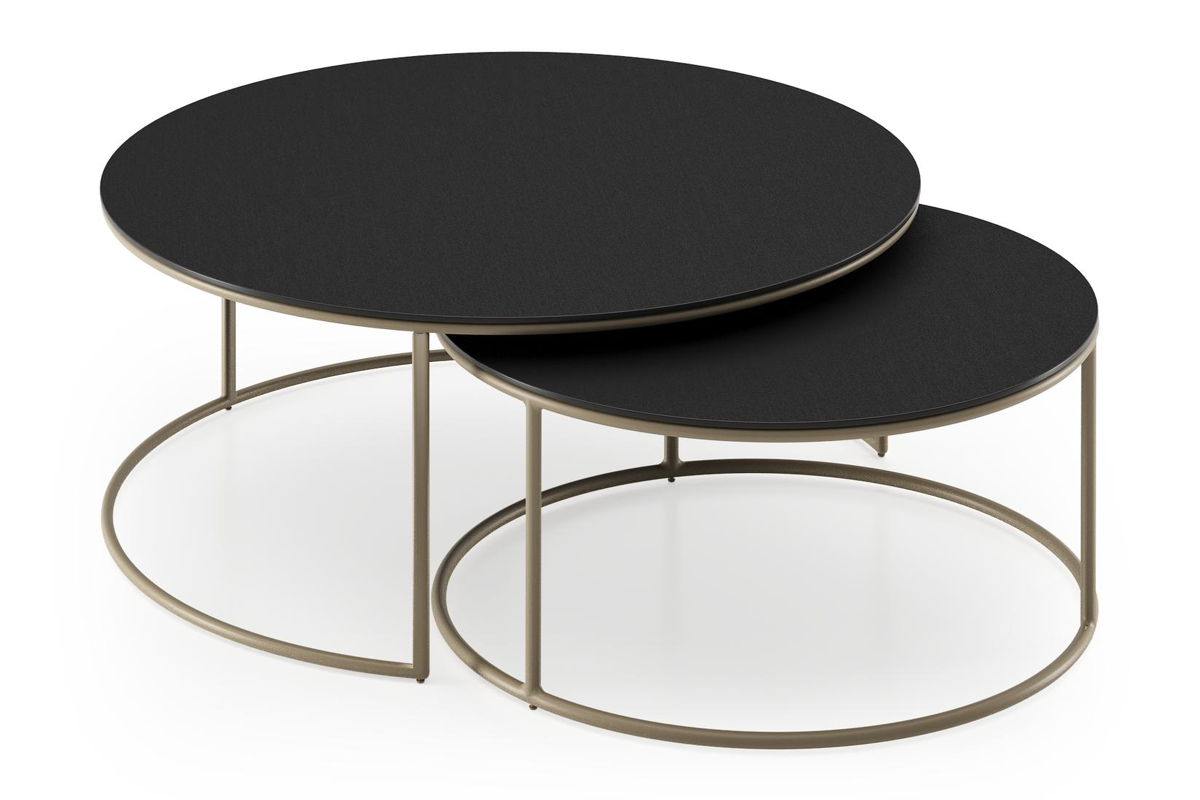 Ensemble de 2 tables d'appoint Fano ronde en aluminium beige et céramique pleine Nero Black - Diam. 85 x Haut. 35 cm | Exterioo