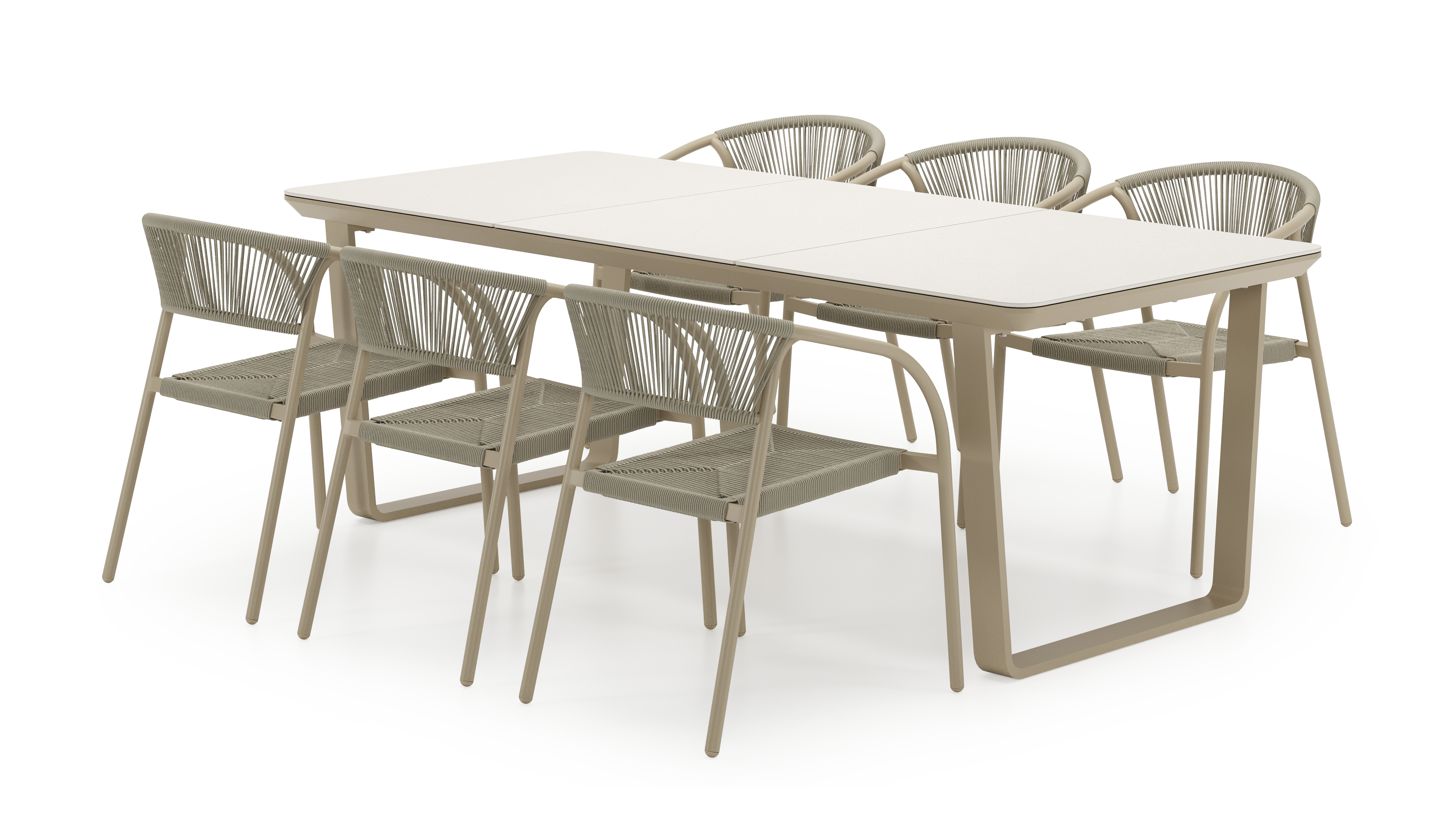 L’armature de la table est en aluminium inoxydable, un matériau robuste mais léger, qui est facile à déplacer. La surface présente une finition lisse, de sorte qu’elle n’attire pas la saleté et est facile à entretenir. Le revêtement poudré garantit la résistance aux UV et aux intempéries de votre meuble.