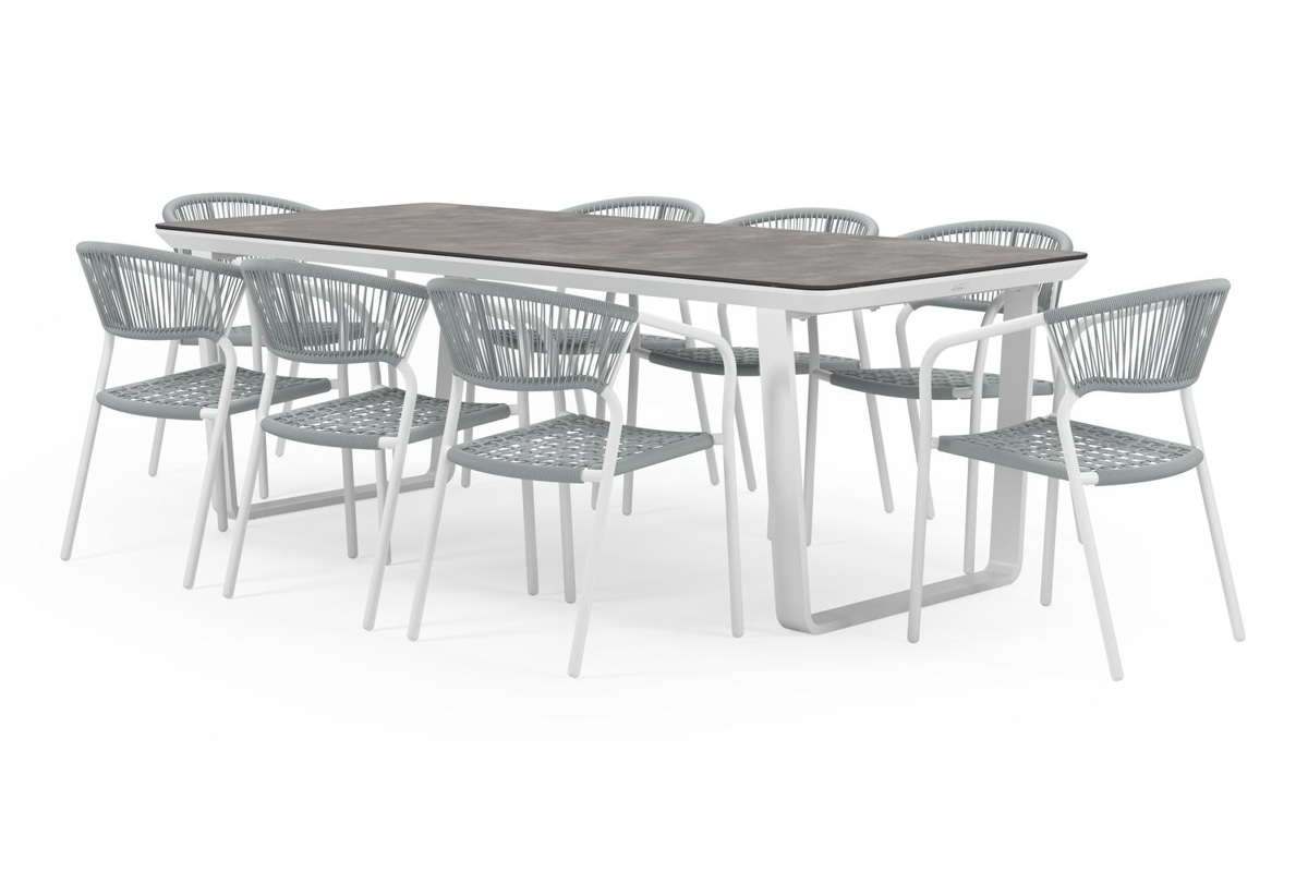La chaise Vigo est une tendance dans l’assortiment Vinci et créera immédiatement une ambiance d’été avec sa finition en corde. Le piètement est en aluminium inoxydable. L’assise et le dossier sont en corde, un polyester facile d’entretien et résistant. La chaise est empilable et est donc facile à ranger.