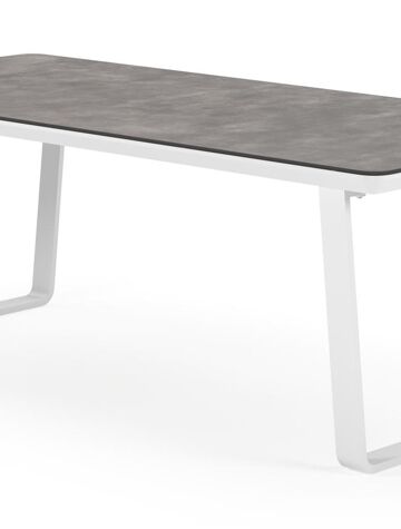 L’armature de la table est en aluminium inoxydable, un matériau robuste mais léger, qui est facile à déplacer. La surface présente une finition lisse, de sorte qu’elle n’attire pas la saleté et est facile à entretenir. Le revêtement poudré garantit la résistance aux UV et aux intempéries de votre meuble.