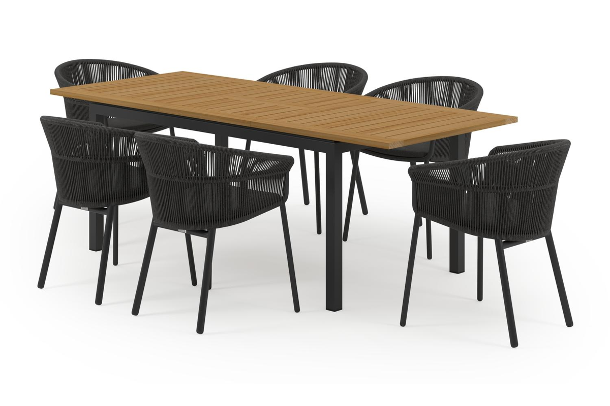 L'ensemble de jardin Amalfi respire la simplicité et crée un effet naturel avec sa finition en teck. La table est extensible et reprend facilement sa forme initiale grâce à son système papillon, qui fait disparaître la rallonge dans la table.