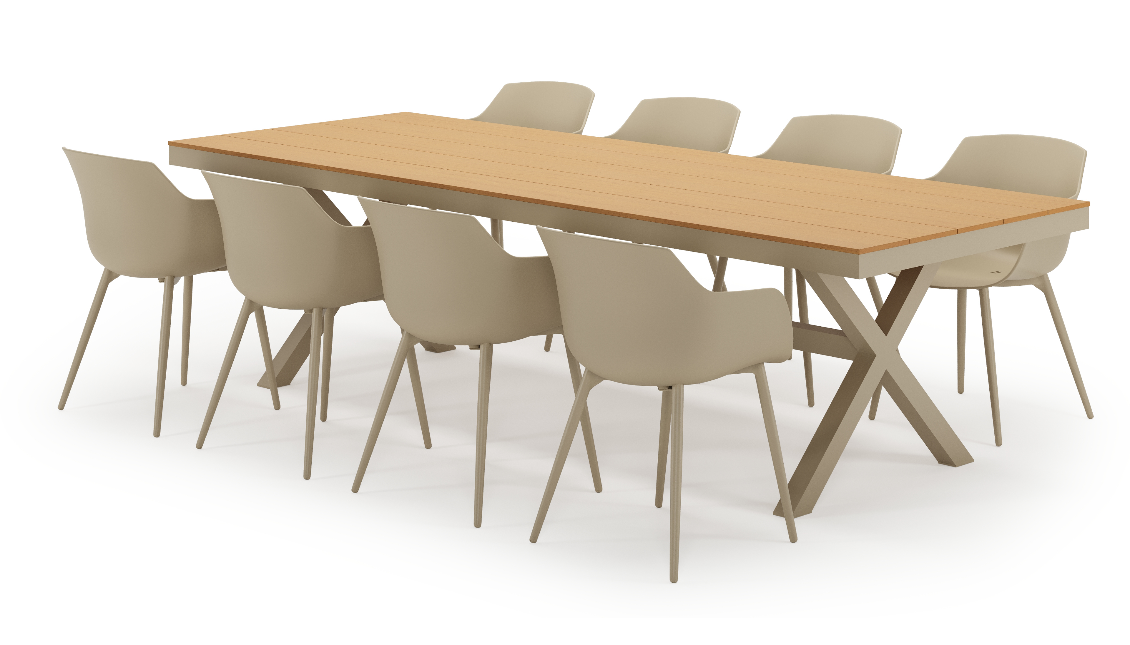 La table de jardin Bahia est reconnaissable à son look solide et son piètement croisé. L’armature sur laquelle repose le plateau de table est robuste. Une barre traverse le milieu de la table comme soutien supplémentaire de l’armature.