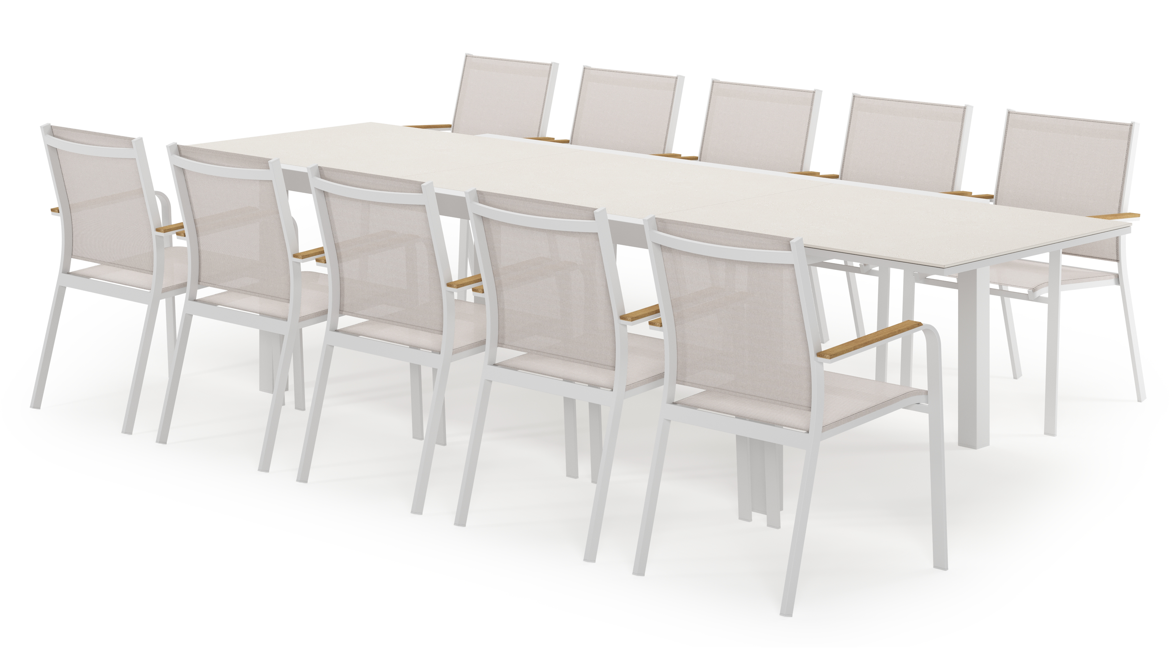 L'ensemble de jardin Calobra est parfaite pour accueillir de nombreux invités et a un aspect robuste. La table est extensible et vous pouvez facilement l’agrandir grâce à au système tilt-up, qui fait disparaître la rallonge dans la table.