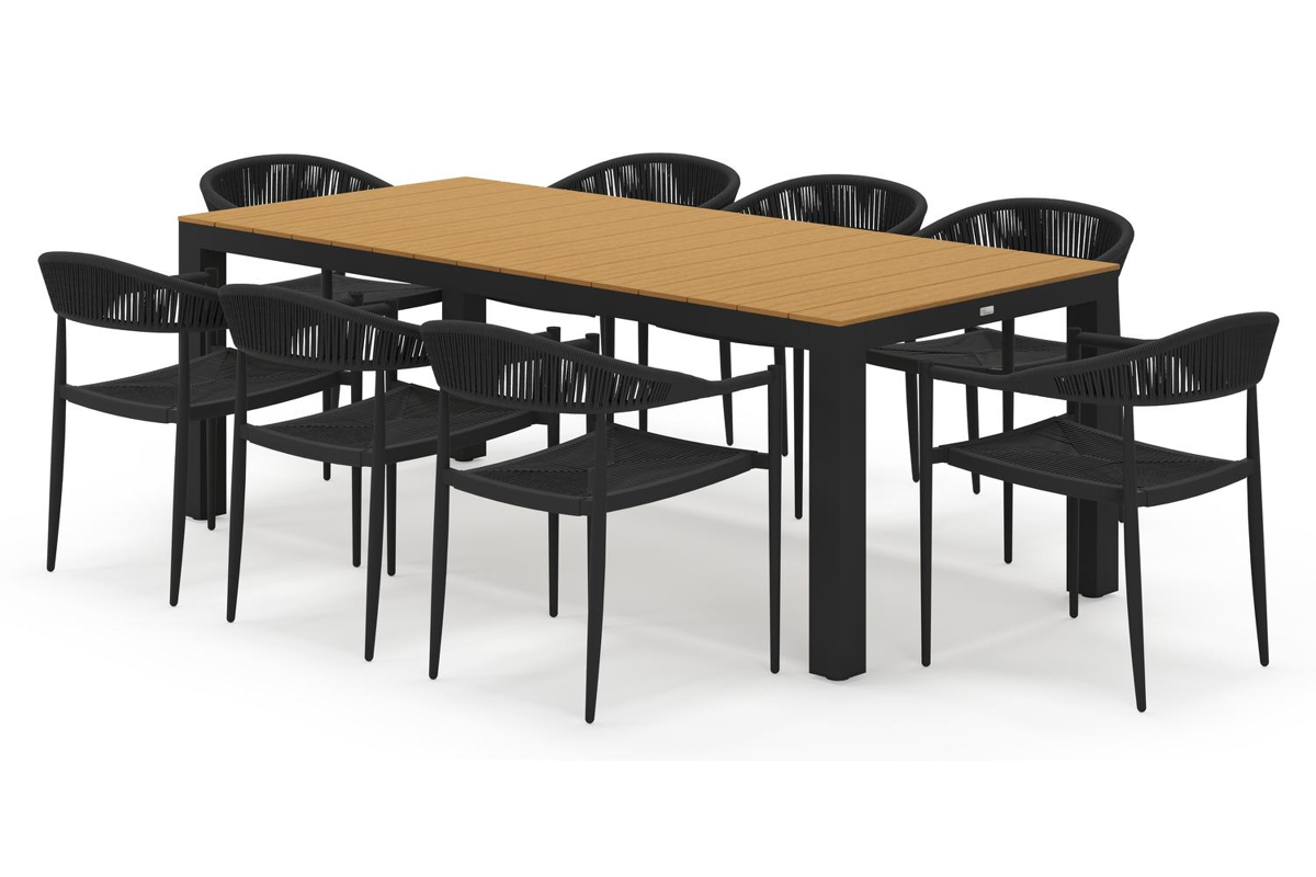 Calzo ensemble de jardin rectangulaire en aluminium noir et polywood avec 8 Guarda chaises de jardin | Exterioo