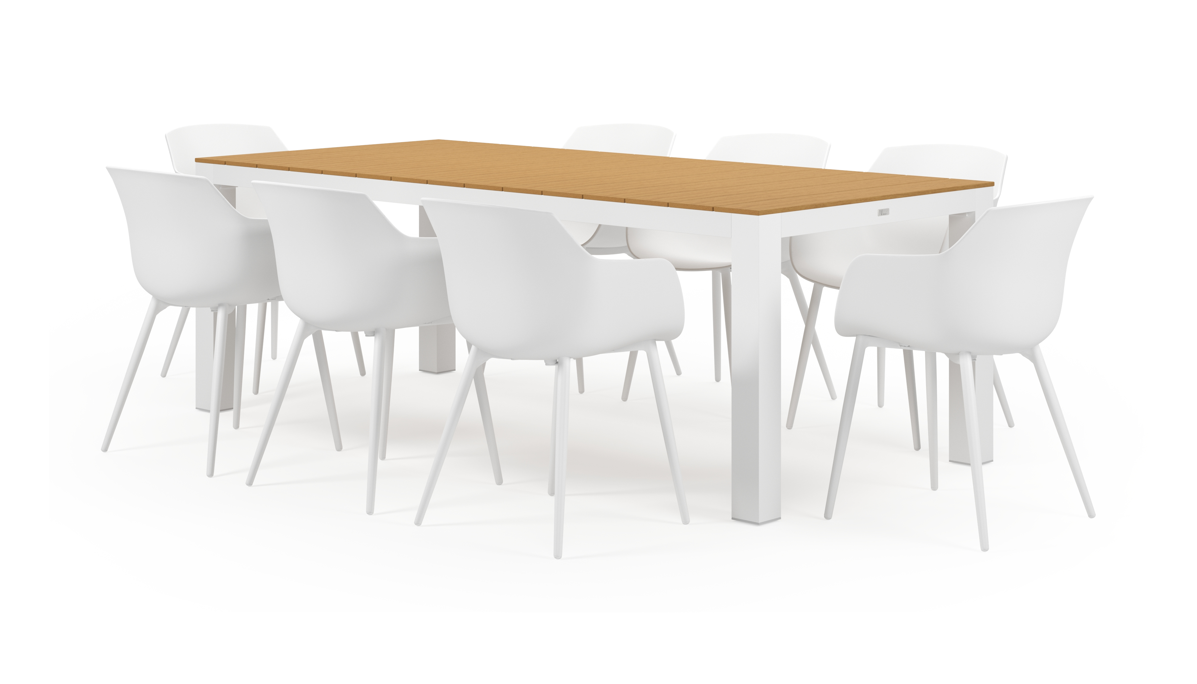 Un plateau de table en polywood semble être en bois, mais est en réalité en plastique. Vous profitez du style charmant du bois, tandis que le plateau ne se fissurera ou ne se fendra pas et conservera son aspect unique de bois brun pendant de longues années. Attention : le polywood est un matériau synthétique qui n’est pas résistant à la chaleur. Une source de chaleur - il peut s’agir de la lumière du soleil à travers du verre - peut l'endommager. Utilisez donc toujours des sous-verre ou un plateau si vous déposez des objets en verre sur le meuble.
