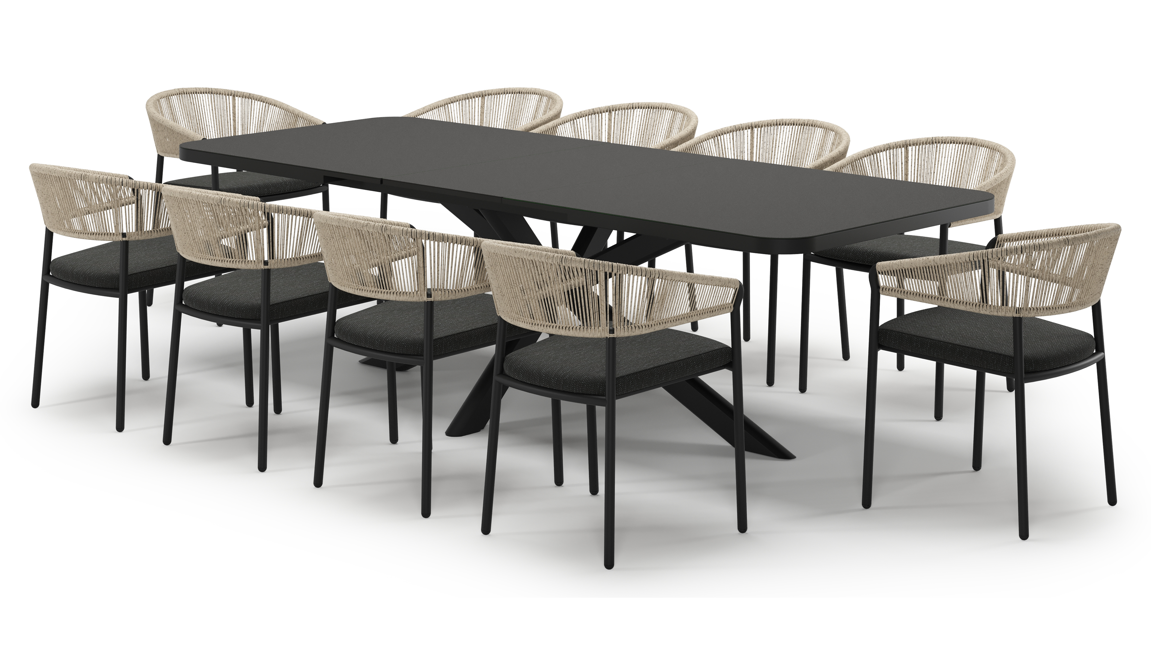 L'ensemble de jardin Estella se distingue par son piètement croisé dynamique qui lui confère un design moderne et affirmé. Grâce à son système extensible, vous créez facilement des places supplémentaires lorsque vous recevez des invités. L’armature de la table de jardin est fabriquée en aluminium inoxydable, un matériau solide mais léger, facile à déplacer. La surface est lisse, ce qui empêche la saleté d’adhérer et facilite l’entretien. Le revêtement en poudre assure la résistance aux UV et aux intempéries de votre mobilier. Un plateau de table de jardin en sintered stone contient différents types de minéraux cuits sous une pression encore plus élevée que la céramique, tout en offrant les mêmes propriétés. Le matériau est extrêmement solide. Il résiste au gel, à la chaleur et aux rayures, et se nettoie facilement.