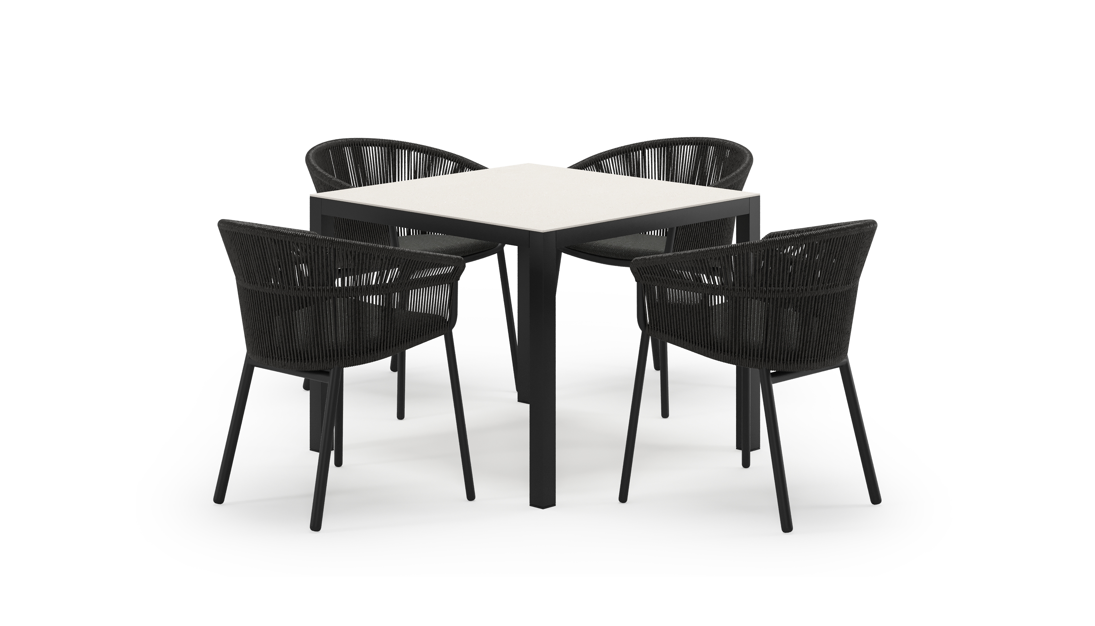 L'ensemble de jardin Feltro a un style élégant et épuré qui convient à toutes les terrasses. En outre, elle offre beaucoup de possibilités de choix de plateau et de format. Parfaite pour de petites terrasses et des balcons.