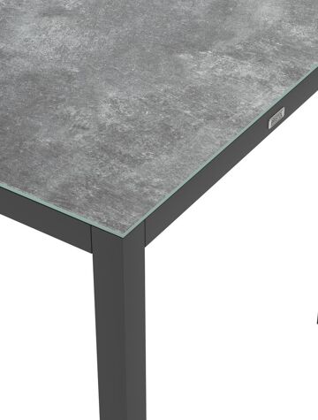L’armature de la table est en aluminium inoxydable, un matériau robuste mais léger, qui est facile à déplacer. La surface présente une finition lisse, de sorte qu’elle n’attire pas la saleté et est facile à entretenir. Le revêtement poudré garantit la résistance aux UV et aux intempéries de votre meuble.