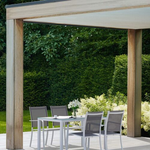 L’armature de la table est en aluminium inoxydable, un matériau robuste mais léger, qui est facile à déplacer. La surface présente une finition lisse, de sorte qu’elle n’attire pas la saleté et est facile à entretenir. Le revêtement poudré garantit la résistance aux UV et aux intempéries de votre meuble.