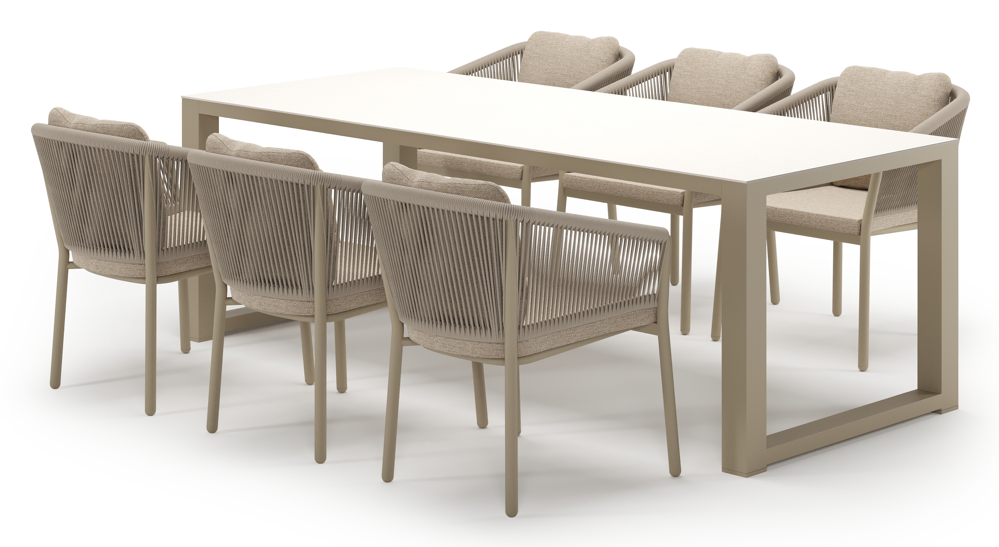 Ensemble de jardin Livo en aluminium beige et sintered stone crema minerale avec 6 chaises de jardin Gerona | Exterioo mobilier de jardin