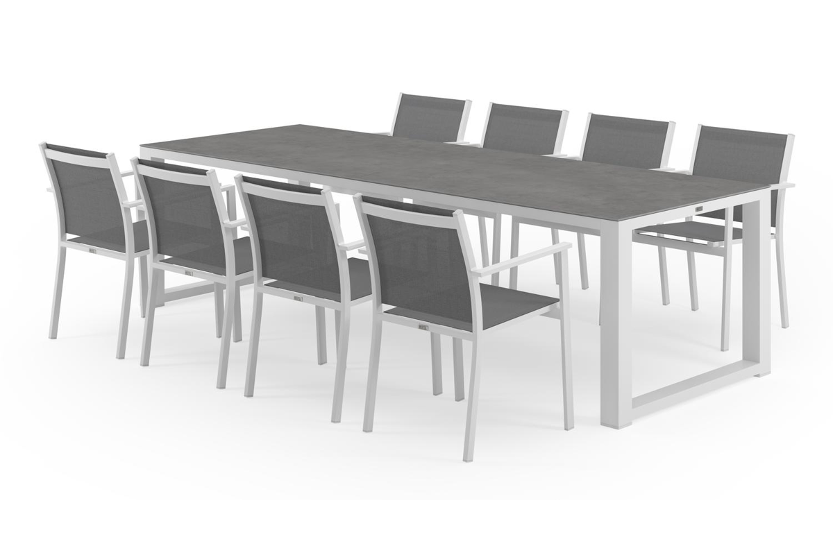 L’armature de la table est en aluminium inoxydable, un matériau robuste mais léger, qui est facile à déplacer. La surface présente une finition lisse, de sorte qu’elle n’attire pas la saleté et est facile à entretenir. Le revêtement poudré garantit la résistance aux UV et aux intempéries de votre meuble.