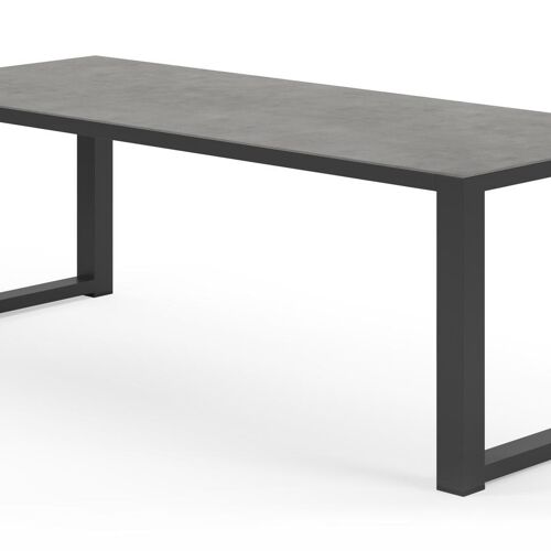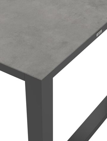 L’armature de la table est en aluminium inoxydable, un matériau robuste mais léger, qui est facile à déplacer. La surface présente une finition lisse, de sorte qu’elle n’attire pas la saleté et est facile à entretenir. Le revêtement poudré garantit la résistance aux UV et aux intempéries de votre meuble.