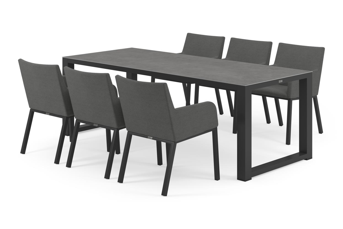 Ensemble de jardin Livo se distingue immédiatement par son pied continu caractéristique de chaque côté. Elle offre ainsi un design unique et dégage de la solidité.